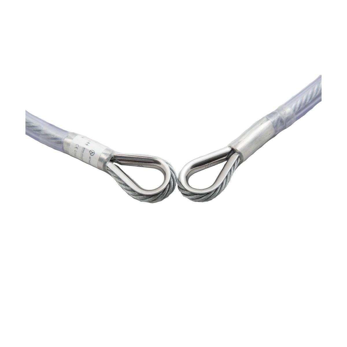 Linka stalowa AT HEIGHT WIRE ANCHOR SLING THIMBLE EYE to solidne i trwałe rozwiązanie, idealne do zastosowań w wymagających warunkach pracy na wysokości. Wykonana z wysokiej jakości galwanizowanej linki stalowej o średnicy 7 mm, jest pokryta grubą, plastikową otuliną, która zapewnia ochronę przed ostrymi krawędziami oraz działaniem niekorzystnych czynników zewnętrznych. Końcówki linki wyposażono w metalowe kausze, co zwiększa kompatybilność z karabinkami i minimalizuje zużycie końcówek.
