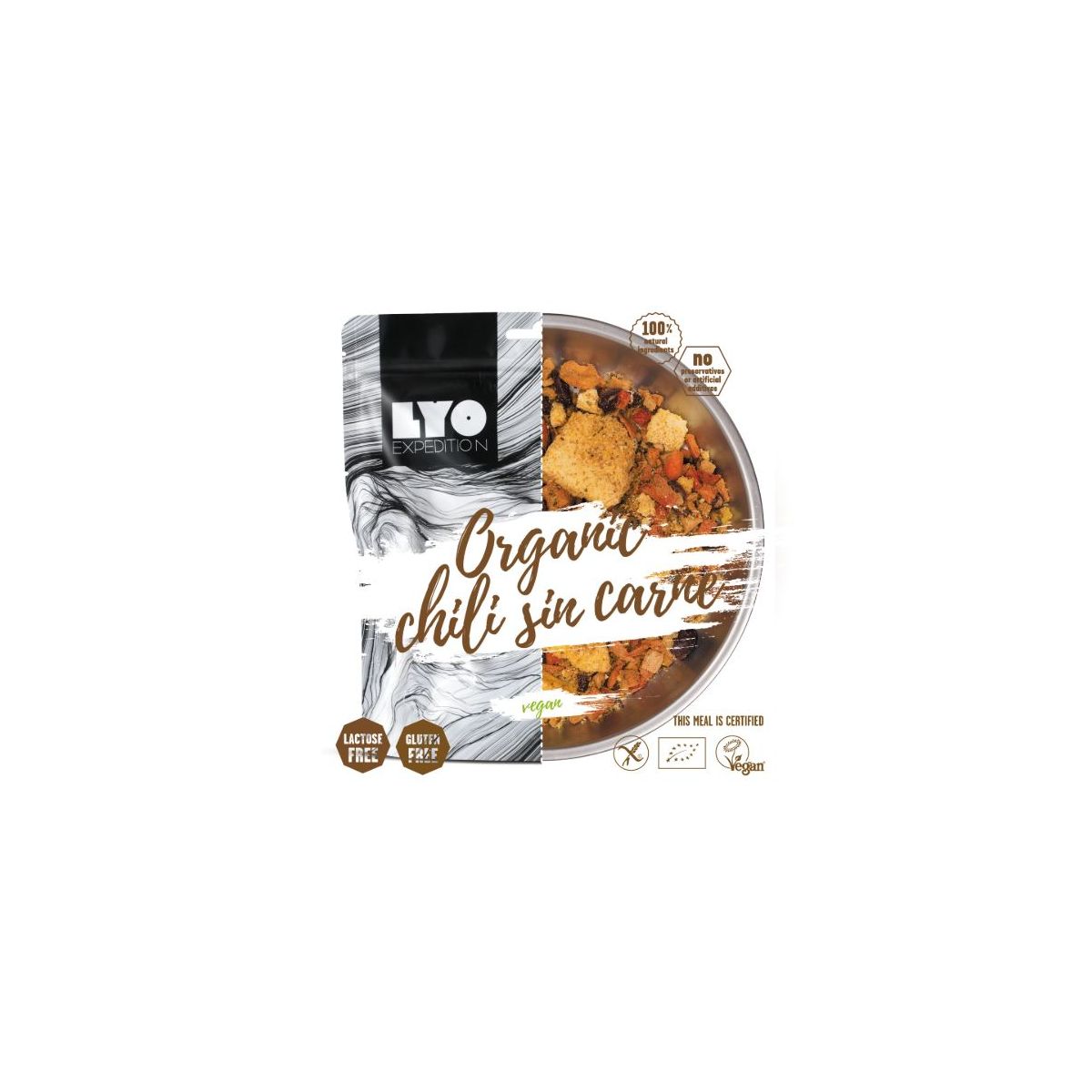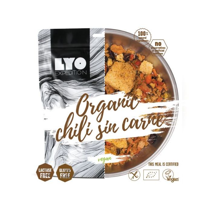 Wegańska wersja klasycznego chili con carne. Pełnowartościowy smak i aromat chilli, pożywnej fasoli, aromatycznej papryki i oliwek, przyrządzone wyłącznie z ekologicznych składników i do tego krowa pozostaje żywa.