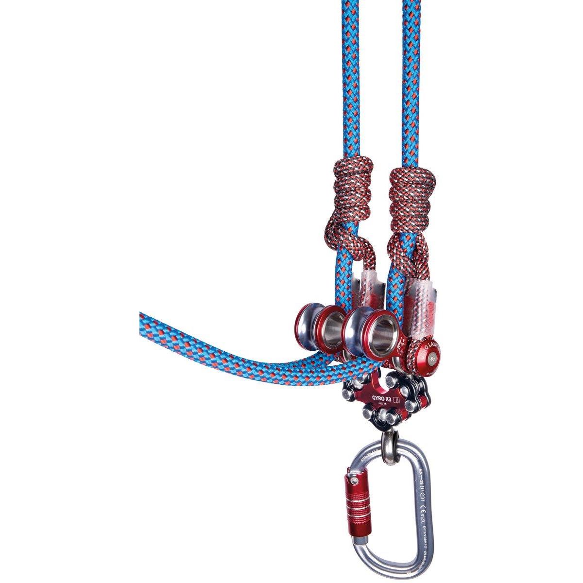 Gyro Lanyard Double w wyjątkowy sposób pozwala użytkownikowi na swobodne obracanie się i przechylanie w jednym punkcie mocowania. Bloczek do wyciągania posiada minimalistyczną konstrukcję i jest wyposażony w wbudowany dodatkowy punkt mocowania.