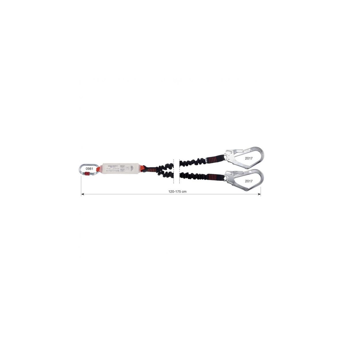 Lonża typu Y wyposażona w absorber energii i dwa elastyczne ramiona zakończone karabinkami typu MGO o dużym prześwicie. W komplecie owalny karabinek stalowy do łączenia z szelkami bezpieczeństwa/uprzężą.
