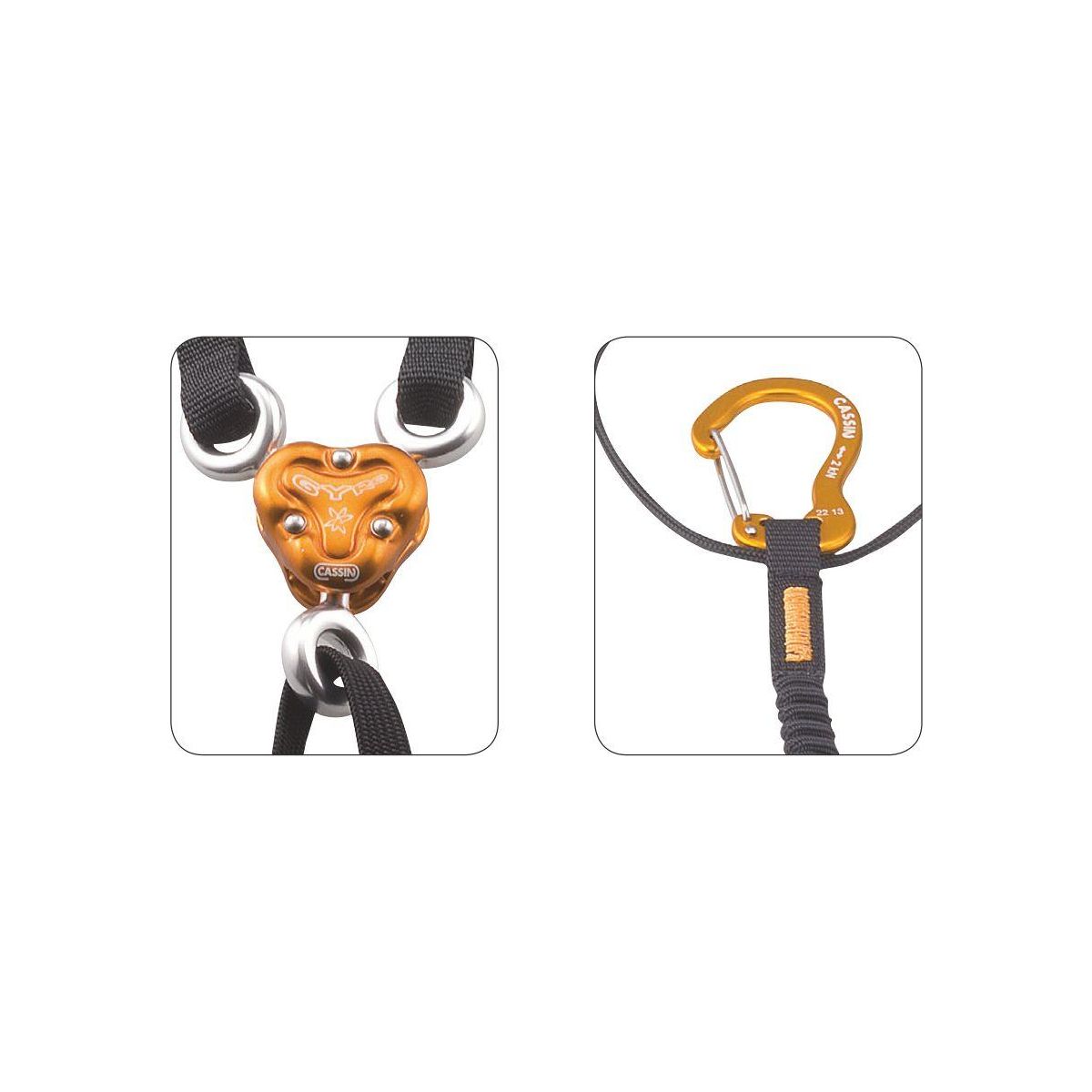 Innowacyjna lonża do czekana Camp (dawnej Cassin) X-Gyro™ korzysta z opatentowanego designu, dzięki któremu każdy jej element (uprząż, lewe ramię i prawe ramię) obraca się niezależnie od pozostałych.