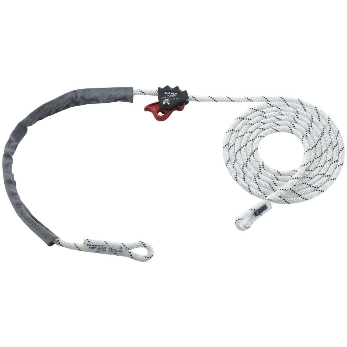 Rope adjuster wykonany jest z 12,5 mm liny statycznej, po której przesuwa się przyrząd zaciskowy pozwalający na regulację długości lonży do 5 metrów. Czerwona przesuwna taśma chroni linę przed przetarciem.
