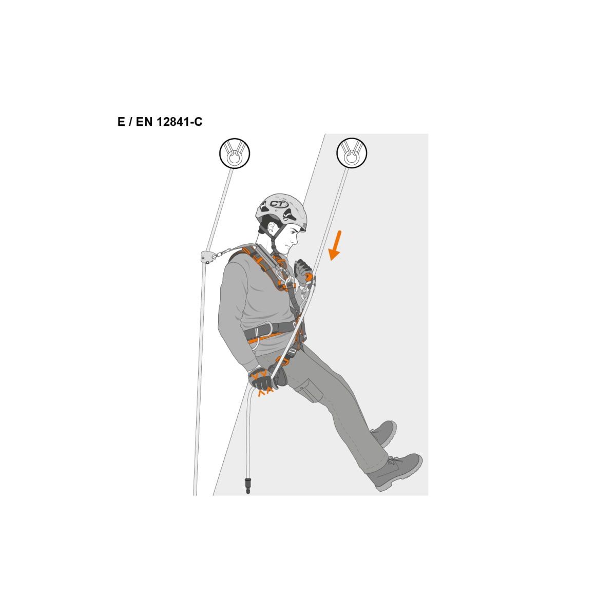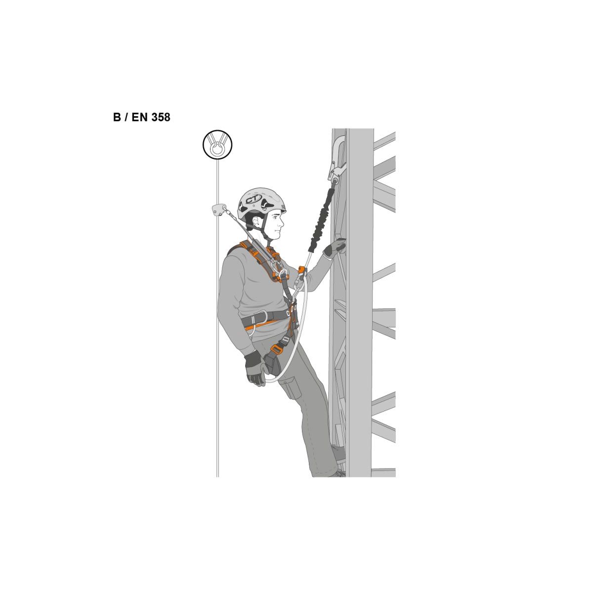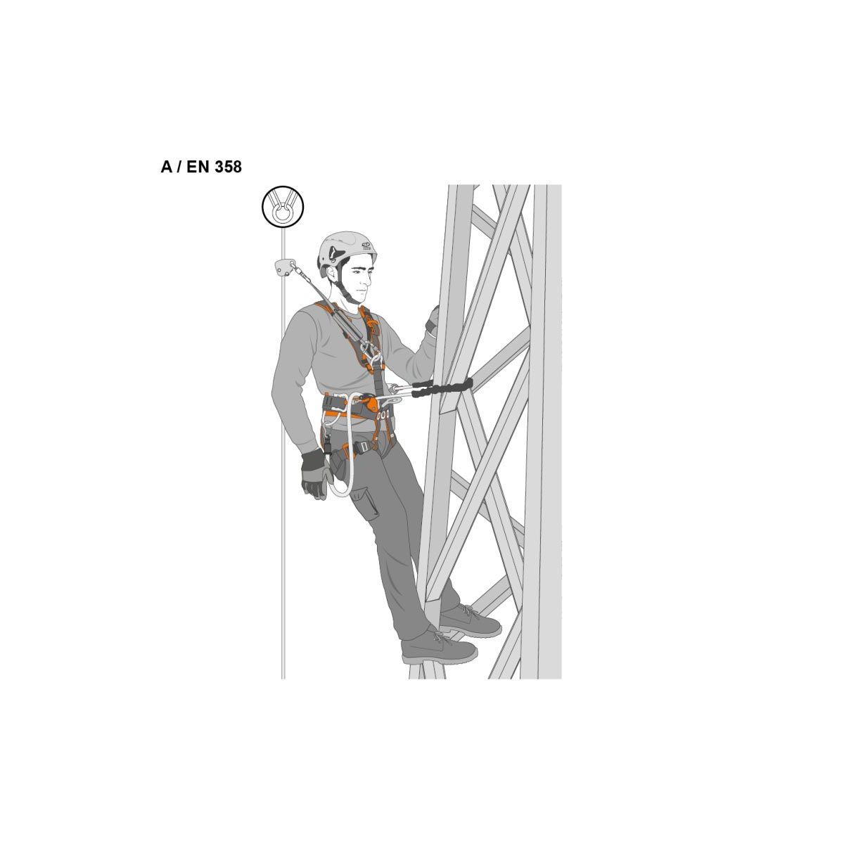 Możliwość podłączenia do bocznych punktów mocowania (zgodnie z EN 358) w pełnej uprzęży do pracy na słupach lub pylonach, a także do brzusznego punktu mocowania (zgodnie z EN 813) do pracy na pochyłych powierzchniach, gdzie nie ma ryzyka wahadła.