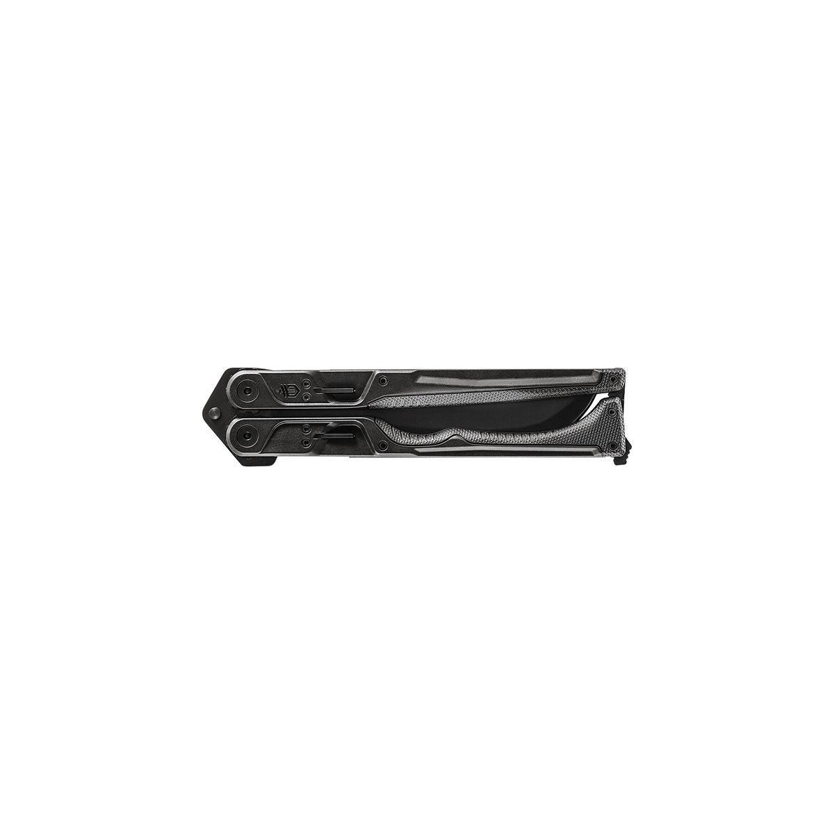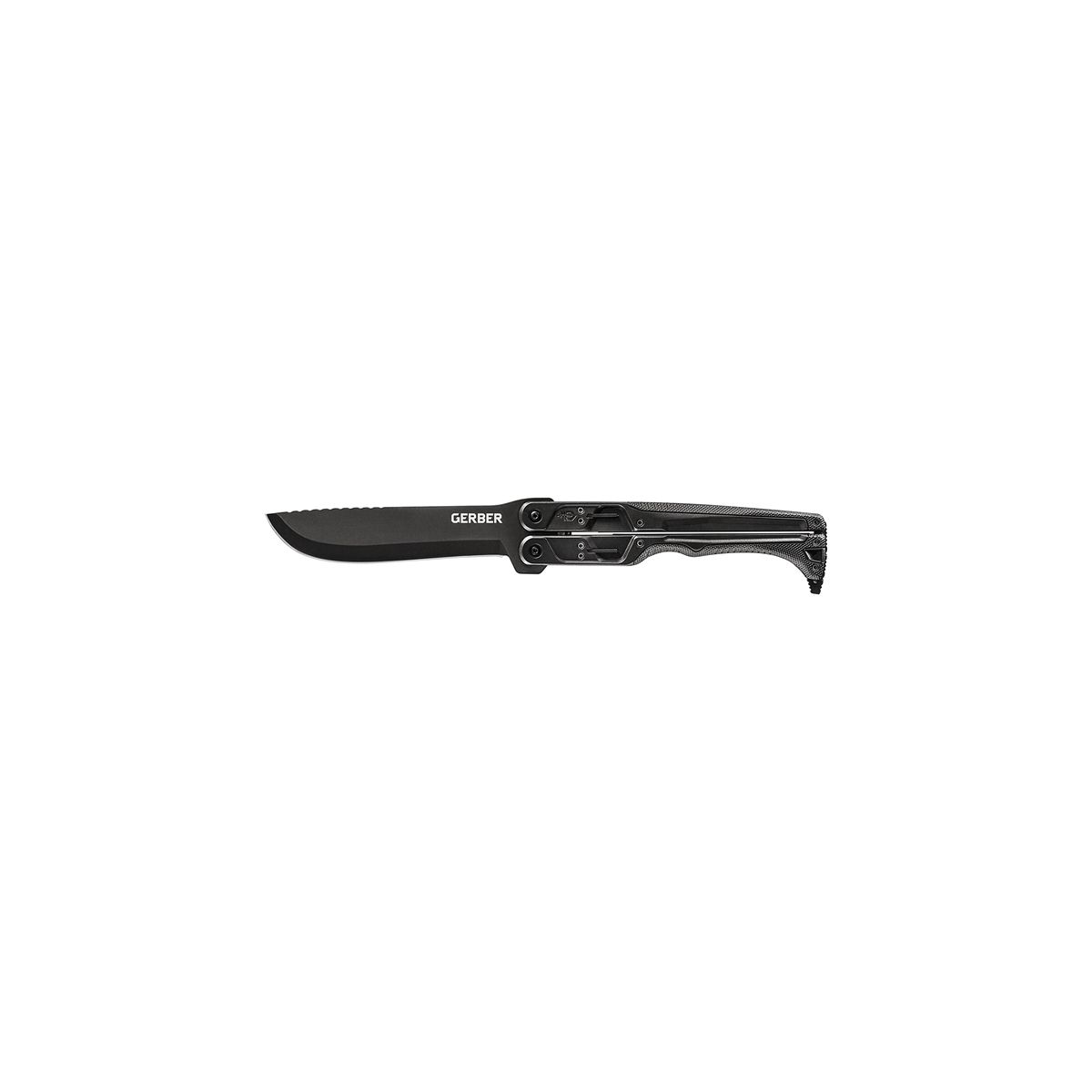 Gerber Gear Doubledown black to tak naprawdę trzy narzędzia w jednym: maczeta, nóż i toporek. Jej ostrze zostało wykonane z amerykańskiej stali wysokowęglowej 420HC. Charakteryzuje się ona dużą ostrością, wytrzymałością i odpornością na korozję. Dodatkowo w części grzbietowej umieszczono specjalne karbowania ułatwiające rąbanie drewna. Dwustronne ostrze ma zarówno delikatną krawędź do cięcia roślin, jak i krawędź piły do cięcia gałęzi i małych drzew.
