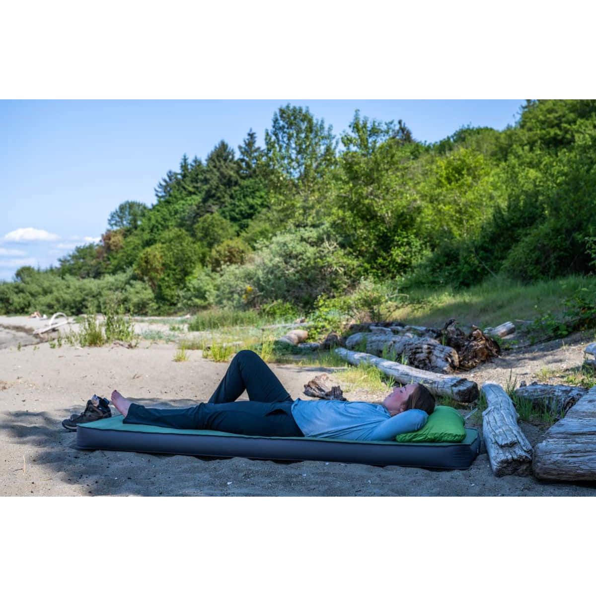 Ogromny rozmiar, wygoda i ciepło - na macie Exped MegaMat 10 MW Green jest to tak wygodne, jak to tylko możliwe na kempingu, w kamperze lub tam, gdzie lekkość nie jest głównym priorytetem.