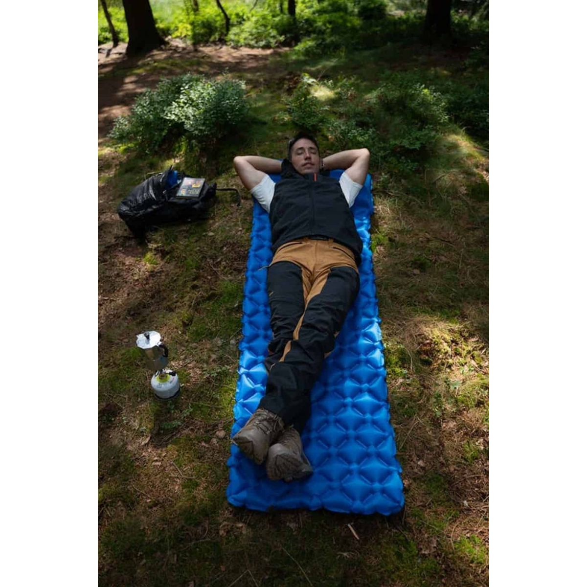 Materac został wykonany z nylonu ripstop 20D 380T z powłoką TPU, dzięki czemu jest niezwykle odporny na przetarcia i uszkodzenia. Powłoka TPU zapewnia dodatkową wodoodporność, co zwiększa komfort użytkowania w zmiennych warunkach pogodowych. Warstwa izolacyjna o grubości 5 cm skutecznie chroni przed nierównym terenem oraz chłodem, zapewniając doskonałą ochronę termiczną i wygodę podczas snu na twardym lub zimnym podłożu.