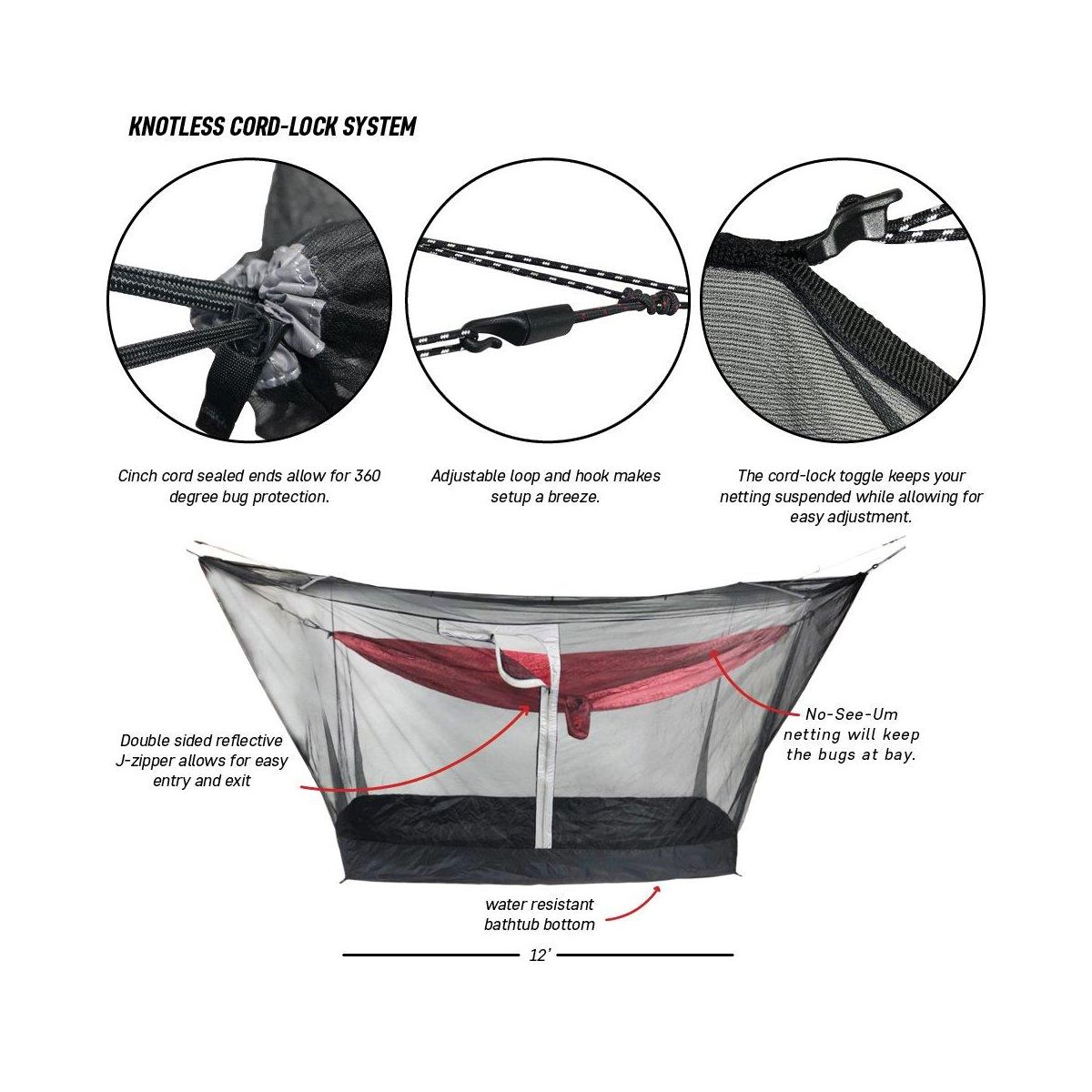 Luksusowa moskitiera, która pasuje do prawie każdego hamaka, posiada wygodne wejście oraz wodoodporną podłogę. Teraz będziesz mieć całkowitą ochronę dla siebie i swojego sprzętu na ziemi.