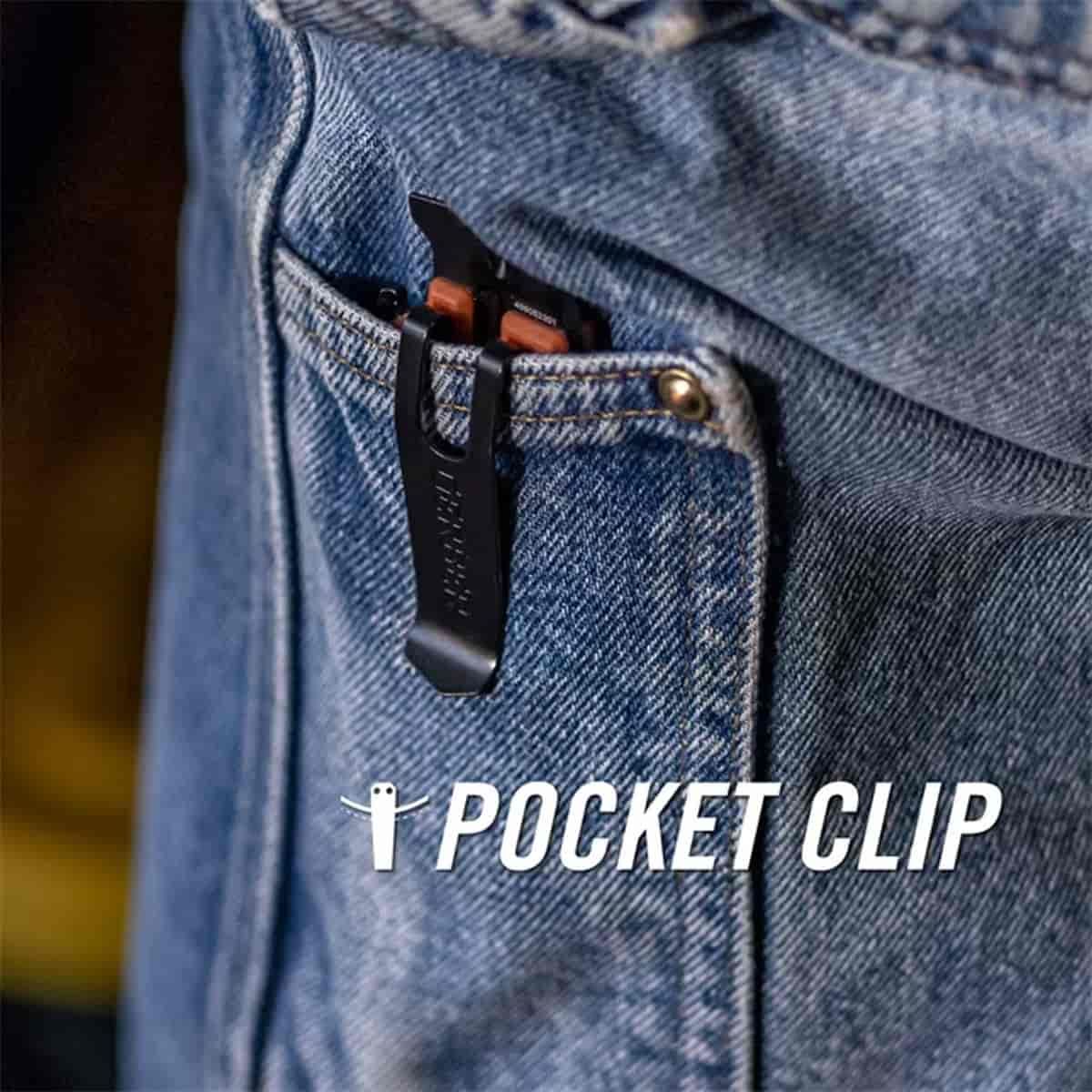 Prybrid Utility Clip można przyczepić do kieszeni lub można go zawiesić na breloku do kluczy.
