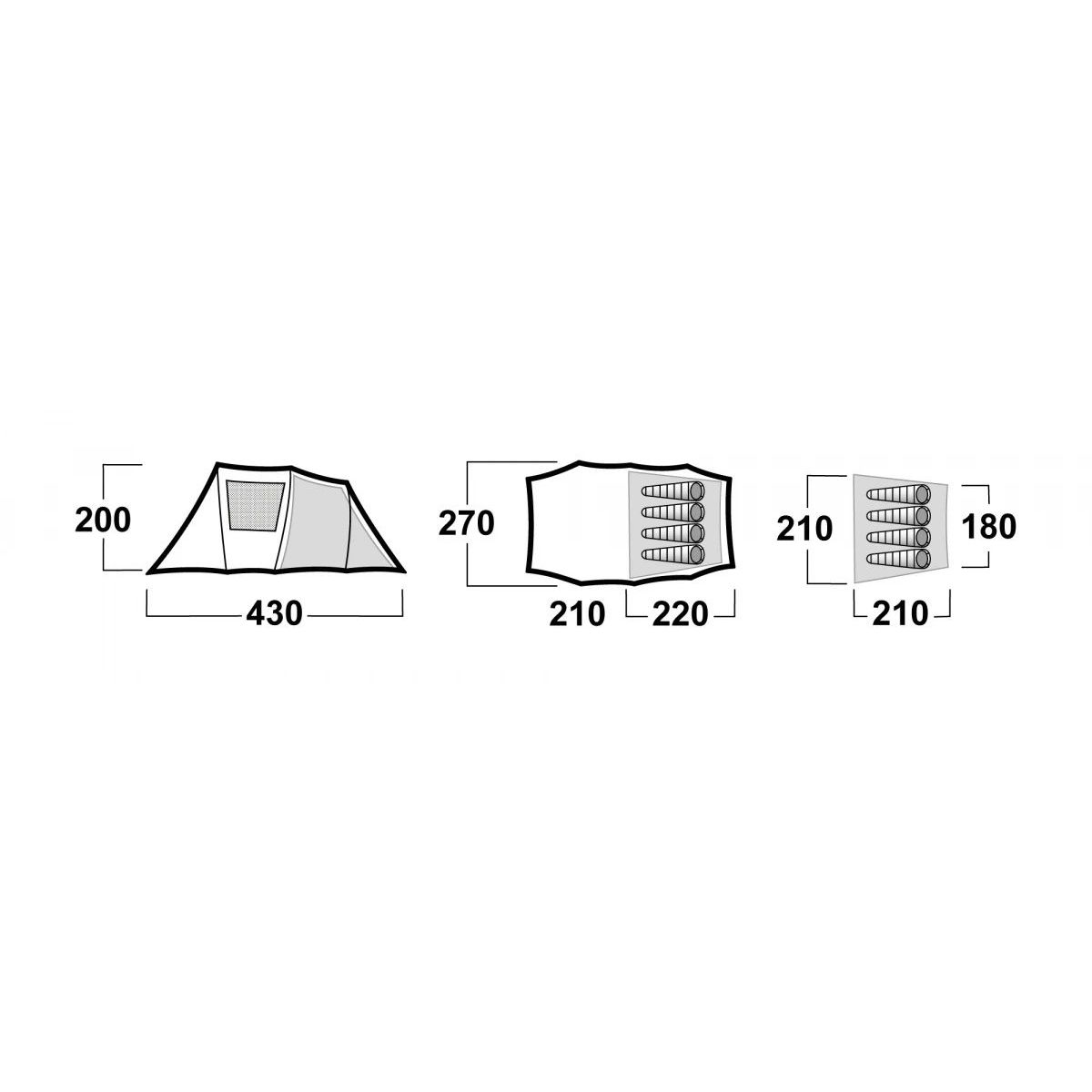 Tunelowa konstrukcja Baul 4 zapewnia dużą, wygodną przestrzeń wewnętrzną dla 4 osób i bagażu, wysokość namiotu w szczycie wynosi, aż 200 cm!