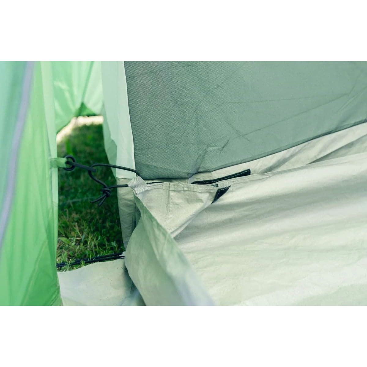 Namiot posiada dwie oddzielne, odłączane sypialnie, każda z własnym wejściem, co zapewnia prywatność i wygodę dla wszystkich użytkowników. Duży korytarz z odłączaną podłogą może być używany jako salon, miejsce do przechowywania bagażu lub przestrzeń do gotowania.