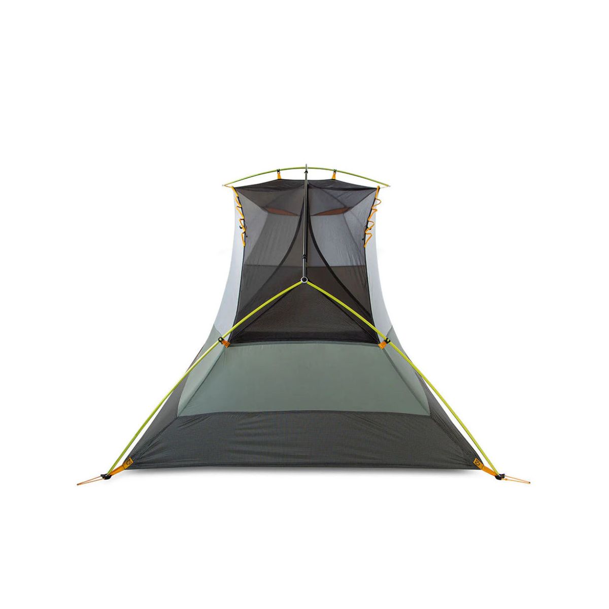 NEMO Dragonfly OSMO Bikepack 2P to ultralekkie, turystyczne rozwiązanie stworzone z myślą o wyprawach rowerowych. Korzysta z innowacyjnego materiału OSMO™ Ripstop, co zapewnia wyjątkową odporność na wilgoć i rozciąganie. Dzięki skróconym segmentom stelaża idealnie pakuje się w sakwach rowerowych. Mieści dwie osoby, oferując przestronne wnętrze, dwa wejścia i przedsionki oraz specjalny system schowka do sprzętu.