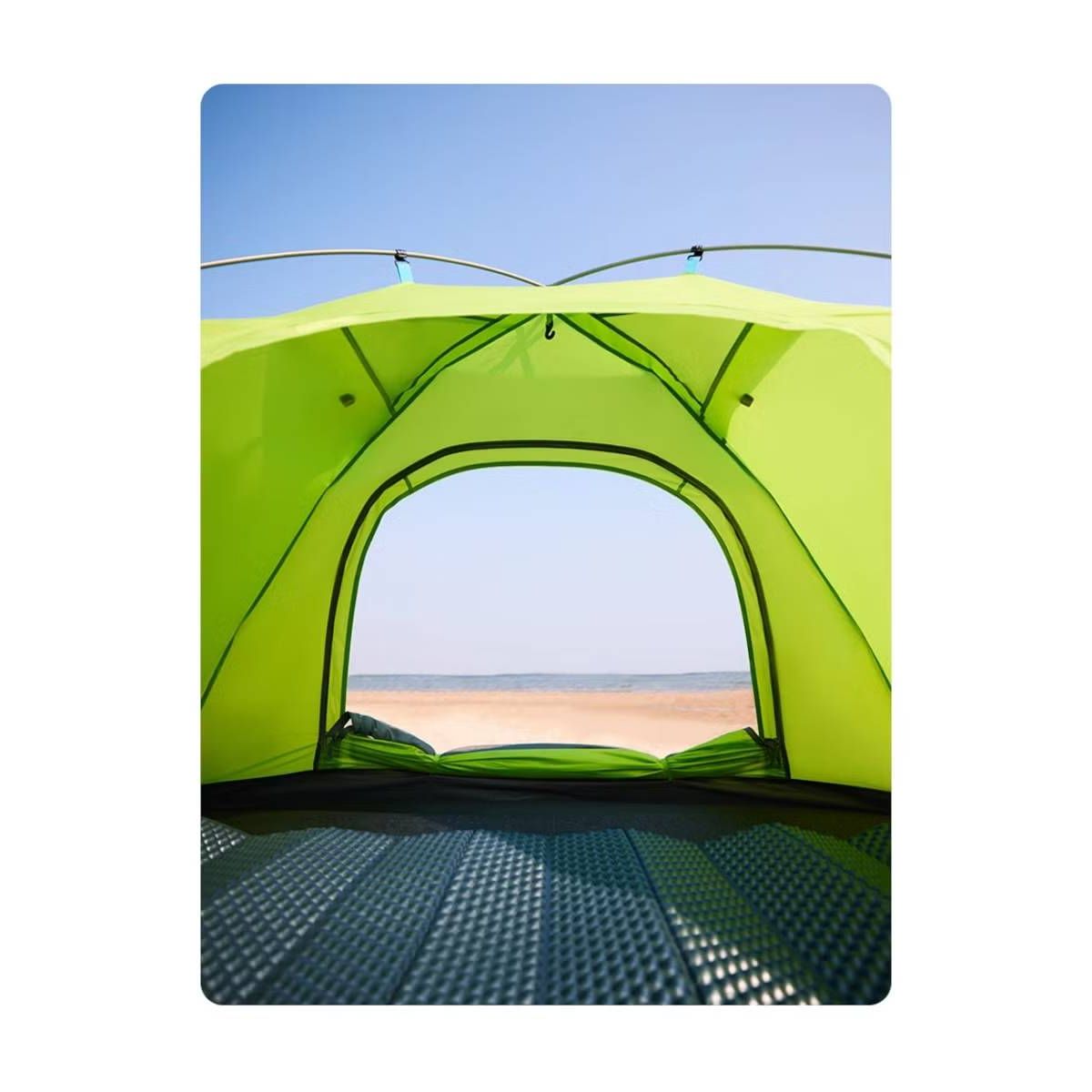 Namiot wykonany jest z wytrzymałych materiałów poliestrowych o wysokiej wodoodporności (3000+ mm), które również chronią przed szkodliwym promieniowaniem UV na poziomie UPF40+. W szczycie znajdują się dwa wywietrzniki, które wspomagają cyrkulację powietrza, zapewniając komfort w ciepłe dni i noce. Wewnątrz znajdziesz wygodne kieszenie na drobne przedmioty oraz haczyk na lampkę turystyczną.