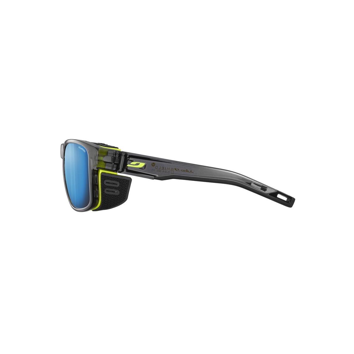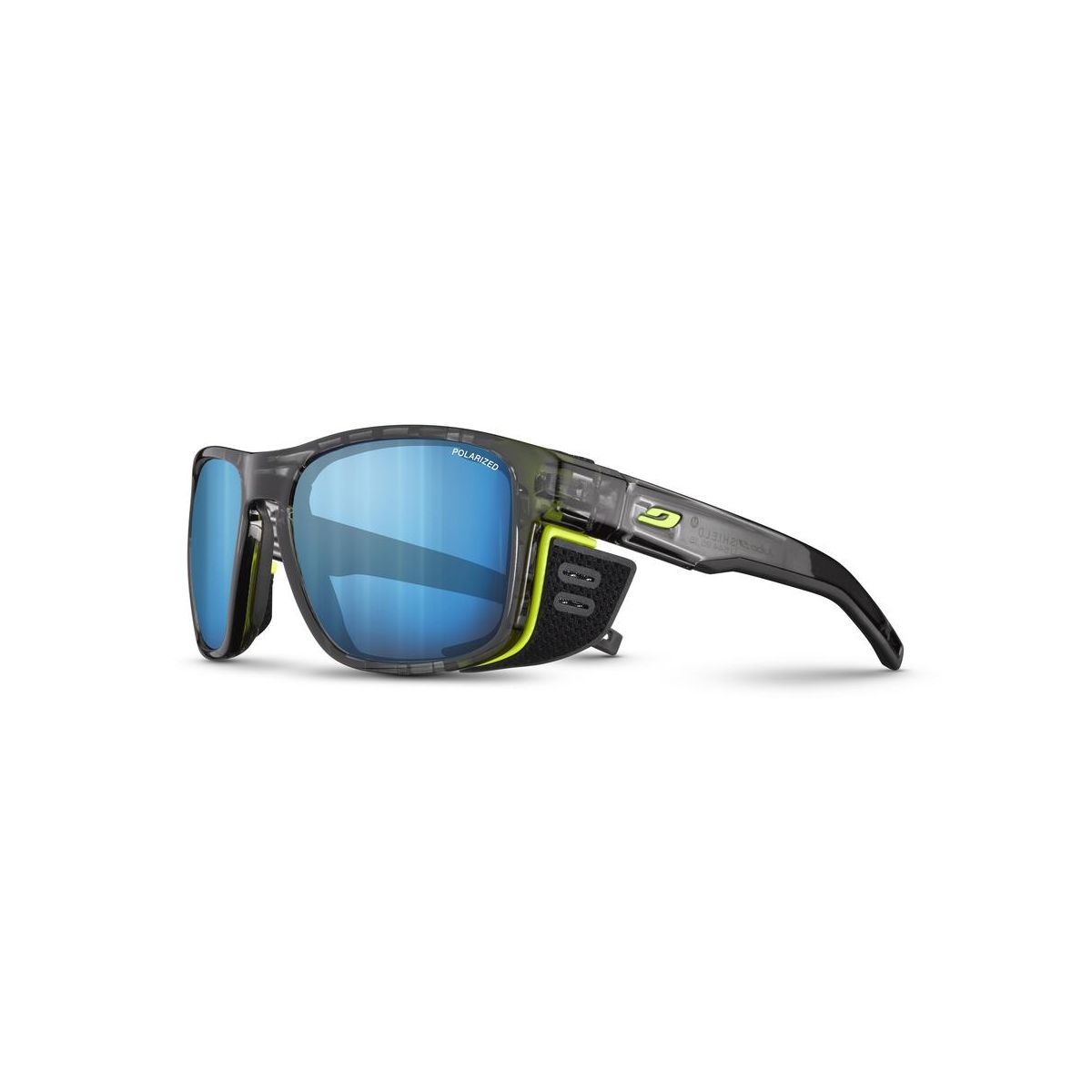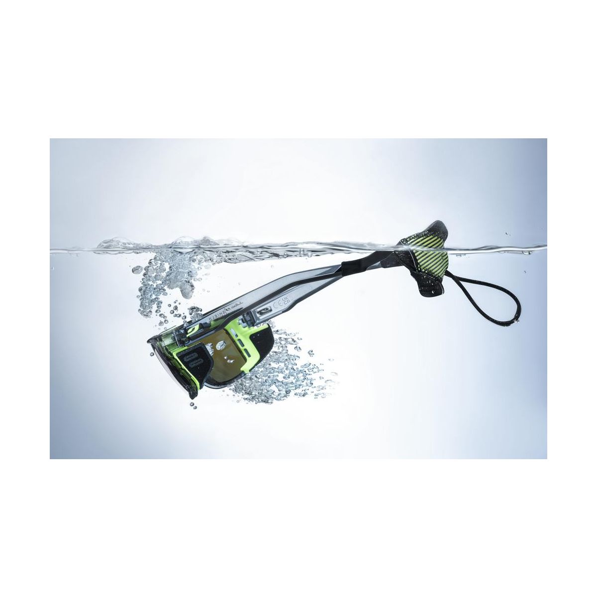Okulary Julbo SHIELD wyróżniają się zakrzywionymi zausznikami Grip Tech, które pozwalają na założenie pływającego sznurka, oraz antypoślizgowym noskiem, co sprawia, że trzymają się twarzy nawet w trudnych warunkach pogodowych. Dodatkowo, dzięki nowoczesnym polaryzowanym soczewkom SPECTRON 4 HD, użytkownik może cieszyć się doskonałą widocznością powierzchni wody bez efektu oślepienia.