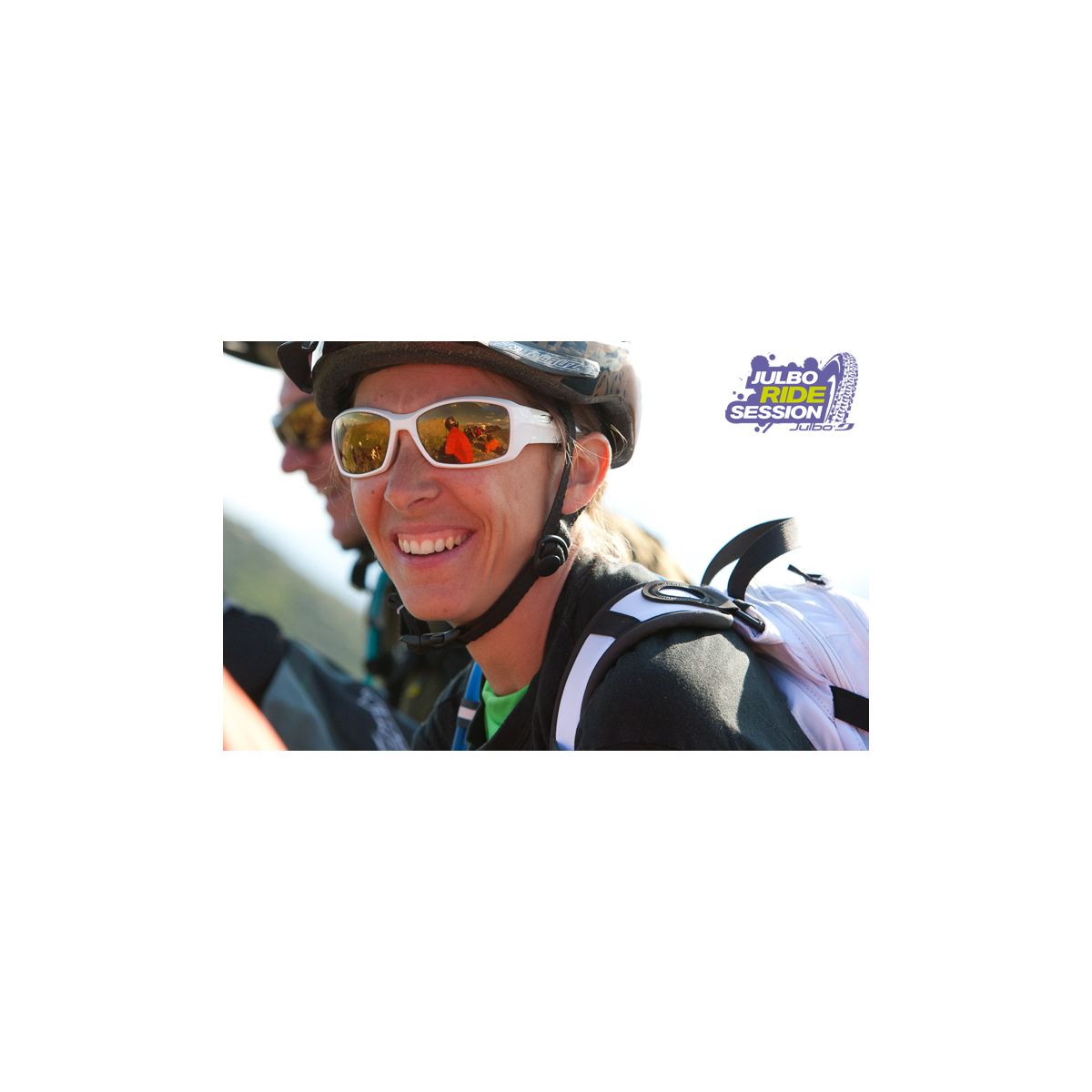 Świetne okulary sportowe Julbo Whoops Spectron 4 z serii Speed z zakrzywionymi zausznikami i pełnym pokryciem - idealnie pasują do mniejszych kształtów twarzy.