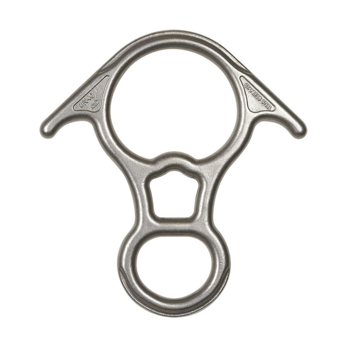 Dodatkowe rogi przy górnym oku umożliwiają budowanie blokera bez potrzeby użycia dodatkowych akcesoriów oraz pozwalają lepiej kontrolować prędkość zjazdu. Polerowana stal nierdzewna minimalizuje zużycie lin i odprowadza ciepło generowane podczas długich zjazdów. Duży otwór umożliwia również bezproblemowe przejście przez węzły.