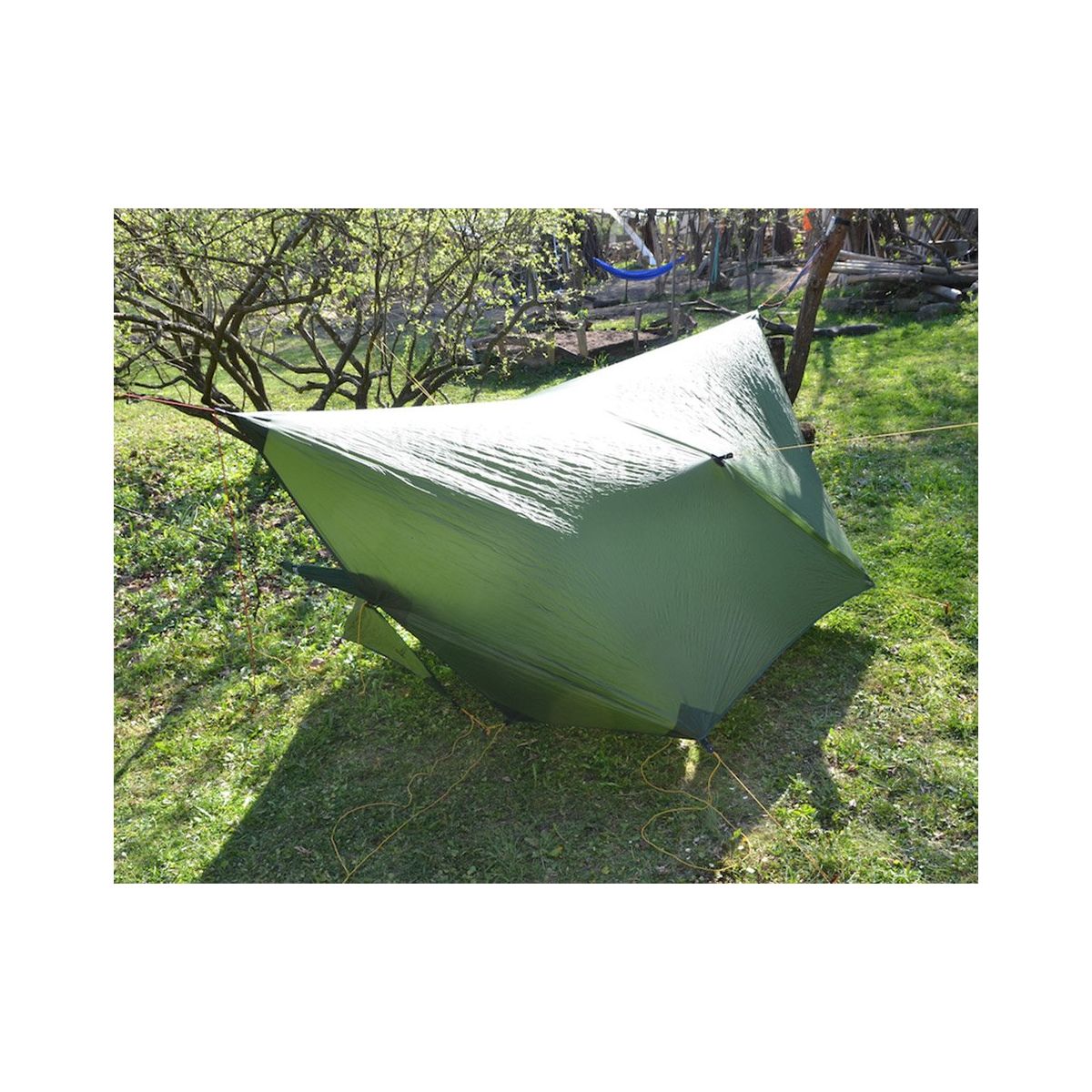 Tarp został wykonany z lekkiego, odpornego na uszkodzenia imateriału 20D ripstop Sil-Nylon, który posiada wodoodporność 2000 mm.