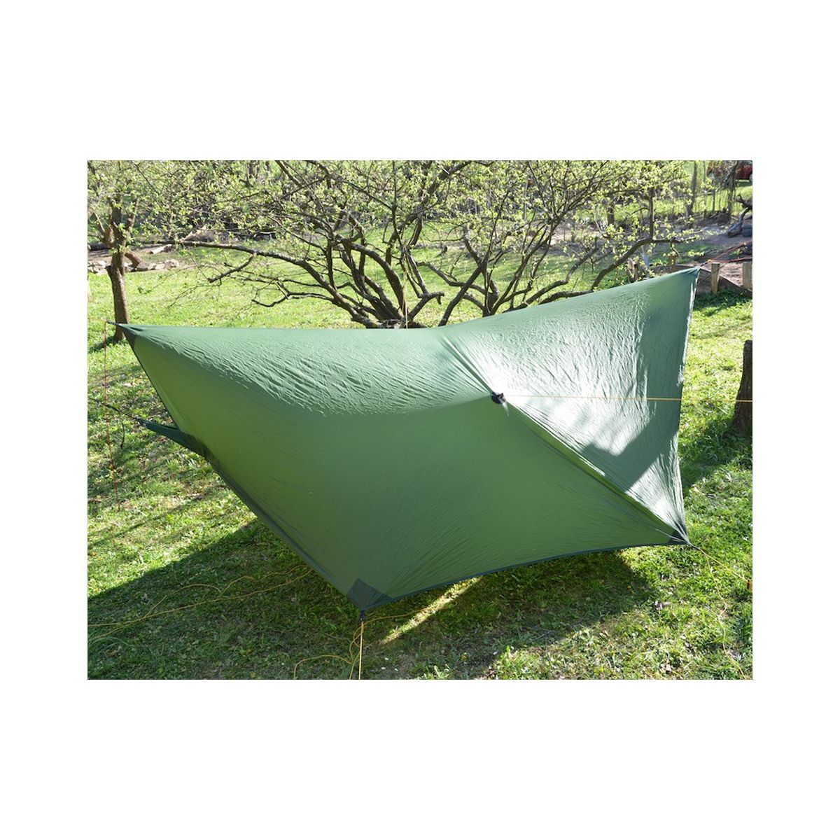 Wzmocnione rogi oraz punkty mocowania z uszczelnionymi szwami sprawiają, że tarp jest bardzo trwały i elastyczny.