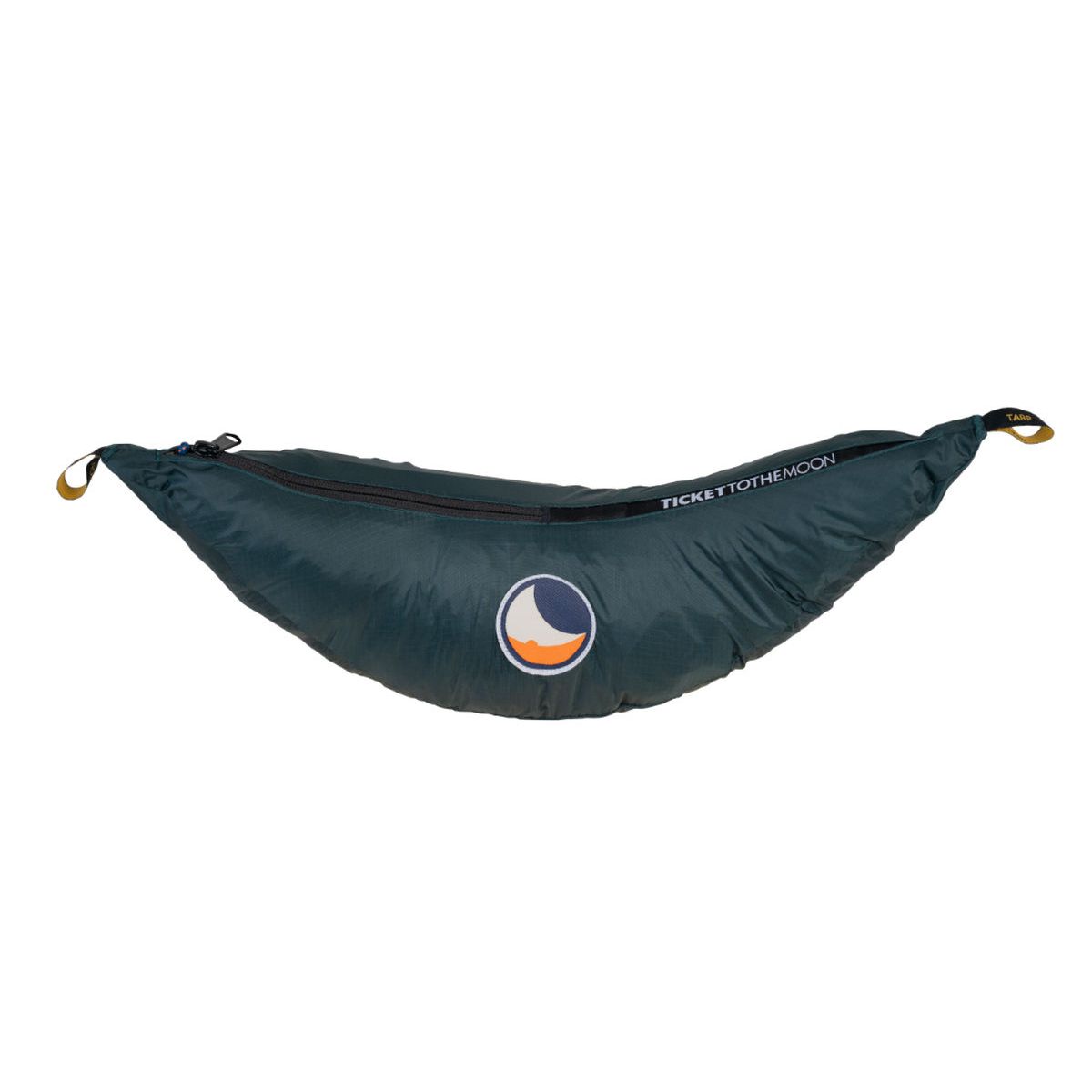 Ticket To The Moon Moon Tarp Dark Green został zaprojektowany na pokrycie dowolnego hamaka (z wyjątkiem Mammock), ale może być również stosowany samodzielnie lub do większości innych hamaków.