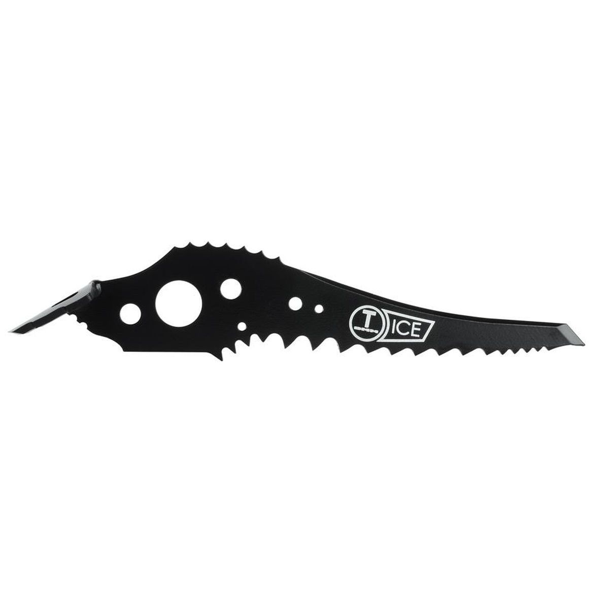Pierwszy ząb zapewnia stabilne oparcie na krawędziach, kolejne sześć gwarantuje skuteczne wbicie i penetrację lodu przy jednoczesnym minimalizowaniu ryzyka zaklinowania czekana. Większe zęby w środkowej części ostrza zapewniają pewne oparcie w luźnym terenie, natomiast trzy ostatnie zęby są dostosowane do pracy na stromych nachyleniach. Ostrze wykonano z precyzją, stosując wycinanie laserowe i obróbkę CNC, co zapewnia odpowiednią ostrość i trwałość.