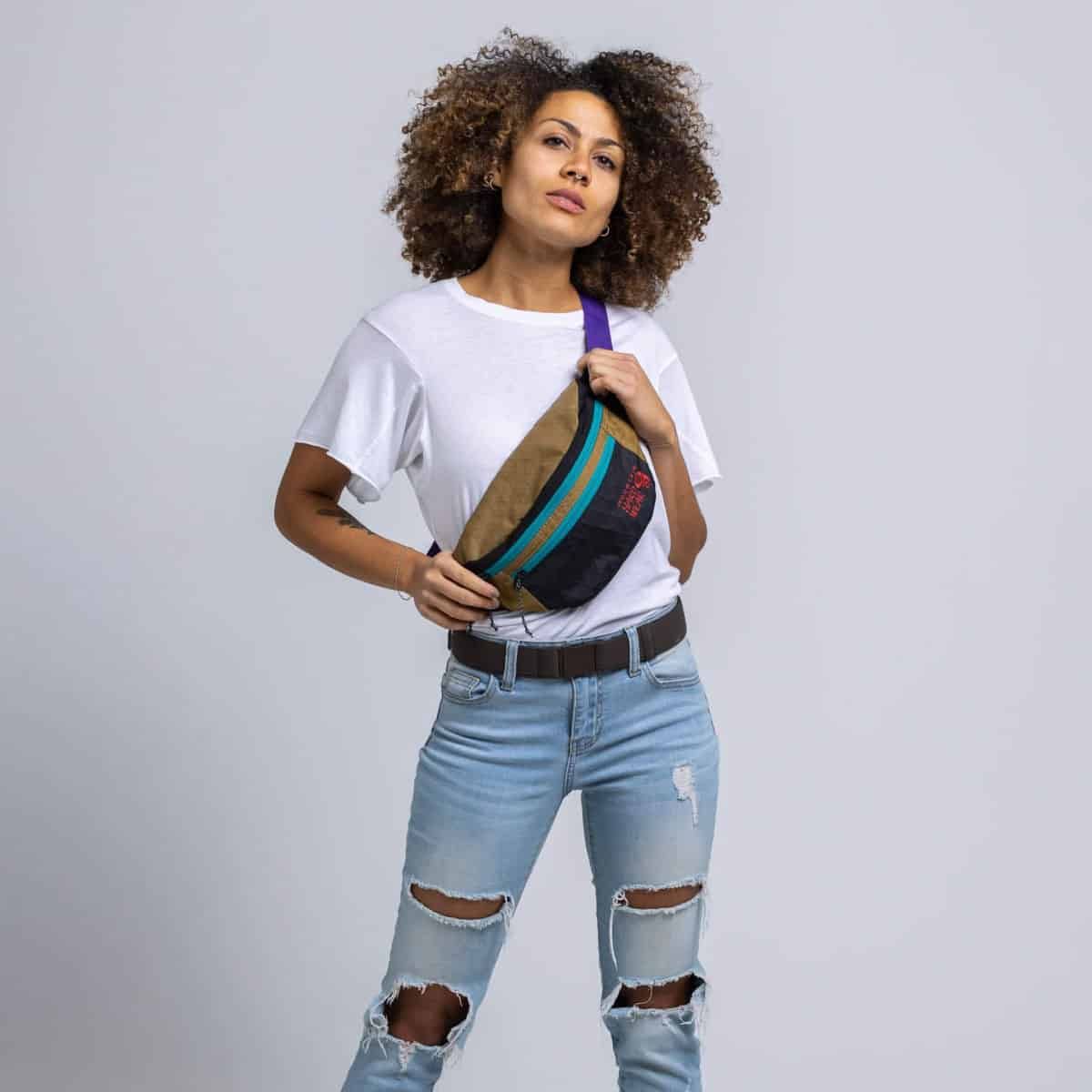 - taśma została wykonana w 85% z poliestru REPREVE®️ pochodzącego z recyklingu (każdy funt ok. 0,5 kg tej przędzy jest wykonany z około 27 plastikowych butelek po wodzie)