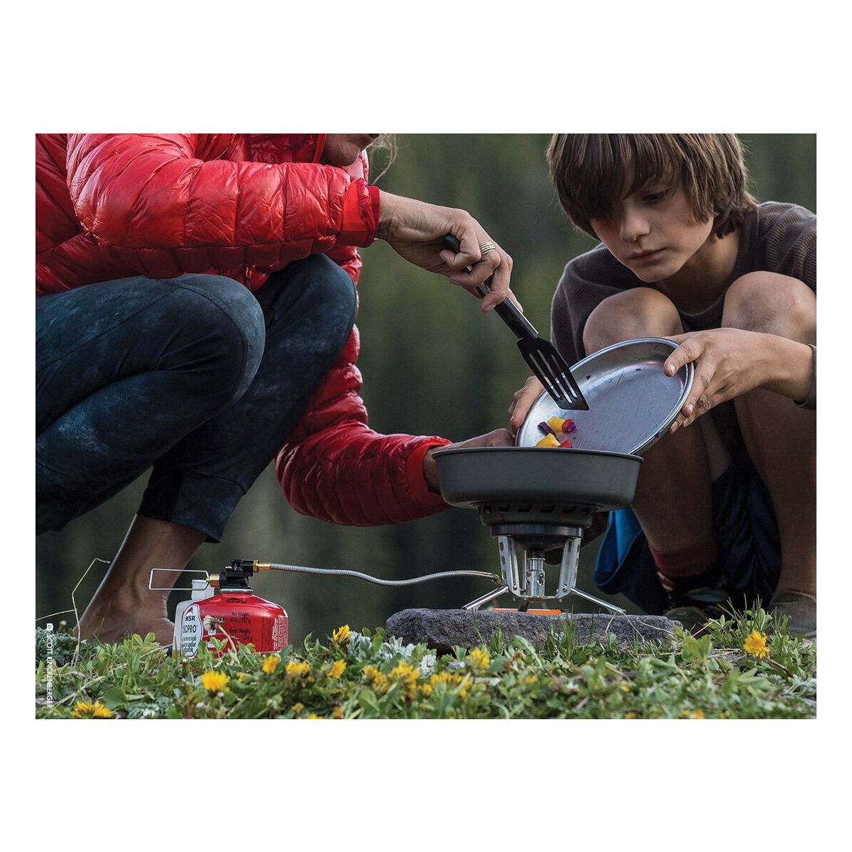 Pasuje do palnika, nie pozwalając na jakiekolwiek straty ciepła i obniżenie efektywności używania. Wykonana z anodyzowanego aluminium z powłoką ceramiczną. Nie spada z kuchenki ani się po niej nie przesuwa. Składana, odczepiana, uniwersalna rączka, która pasuje do innych naczyń MSR.