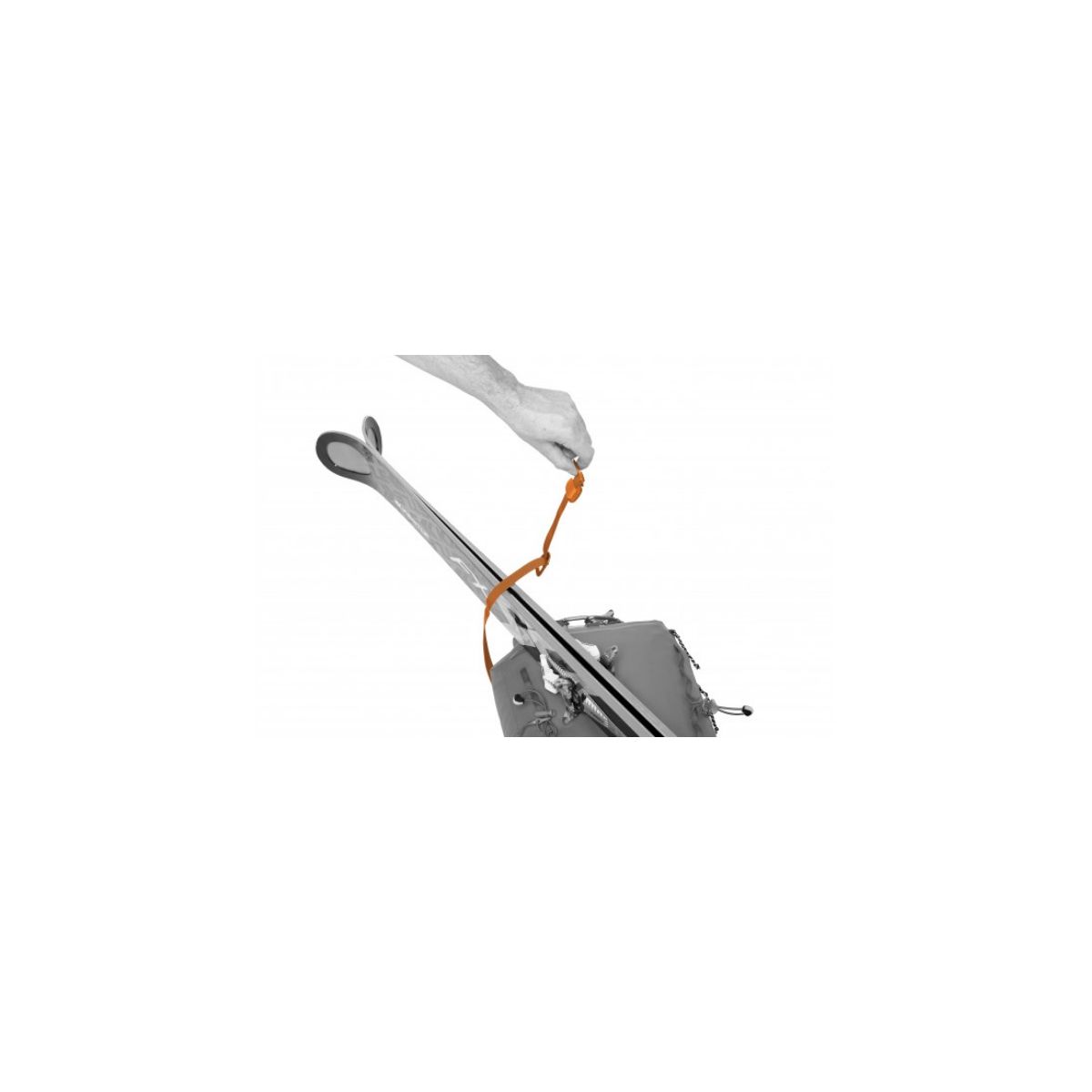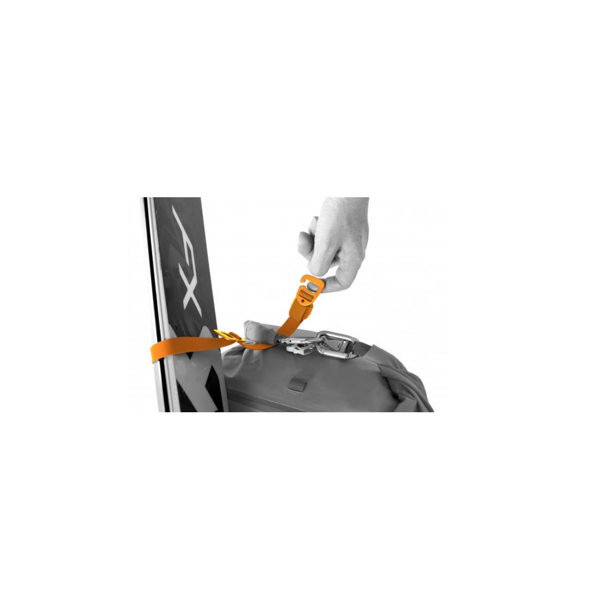 Obszerna przednia kieszeń bez problemu pomieści łopatę lawinową, foki, sondę itp. Dodatkowo funkcjonalność plecaka podnosi system mocowania nart oraz liczne punkty zaczepienia, m.in. system mocowania czekana.