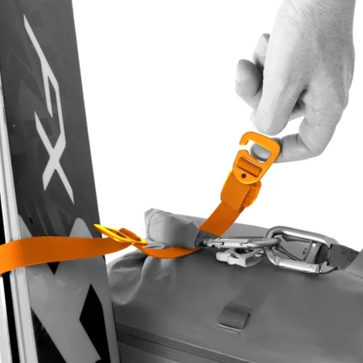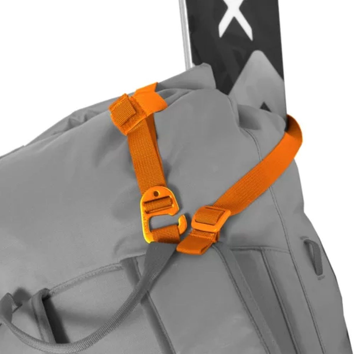 Obszerna przednia kieszeń bez problemu pomieści łopatę lawinową, foki, sondę itp. Dodatkowo funkcjonalność plecaka podnosi system mocowania nart oraz liczne punkty zaczepienia, m.in. system mocowania czekana.