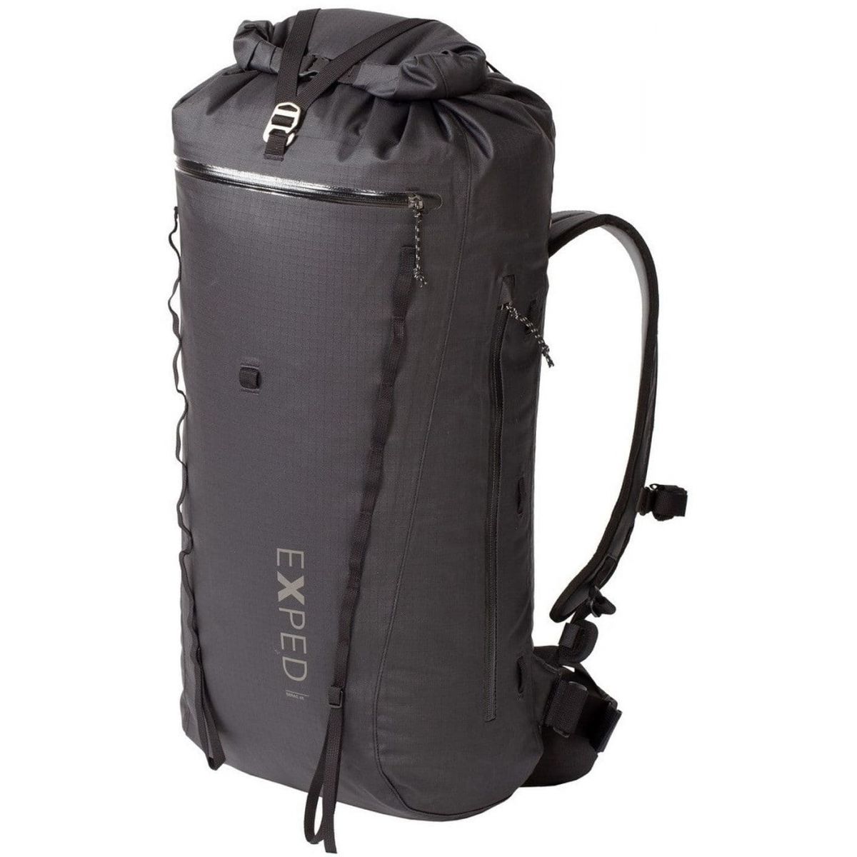 Plecak Exped Serac 45 to minimalistyczny plecak do wspinaczki z górnym rolowanym zamknięciem plecaka i bocznym zamkiem ułatwiającym dostęp do jego zawartości.