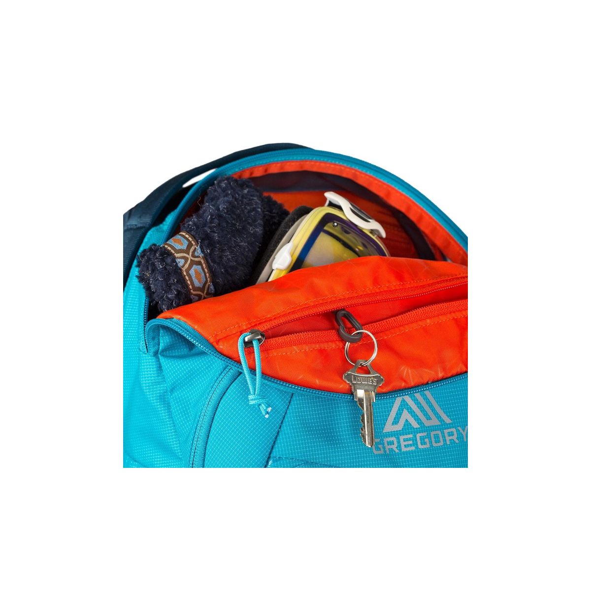Targhee posiada frontową kieszeń na lawinowy zestaw ratunkowy, górną kieszonkę na elektronikę, okulary itp oraz zintegrowany, chowany uchwyt na kask.