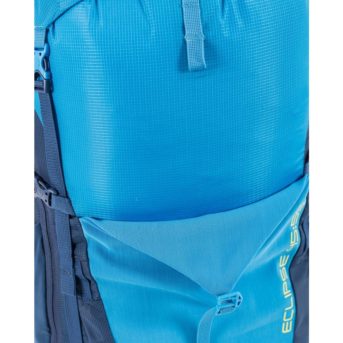 Eclipse posiada obszerna komorę główną która rozpinana jest niezwykle szerokim zamkiem - w kształcie odwróconej litery U, co w znaczącym stopniu poprawia dostęp do ekwipunku. Plecak posiada wygodne zaczepy do mocowania kijków - Tip Gripper, taśmę do zamocowania lampki Led, pętle do czekana oraz boczne troki kompresyjne.