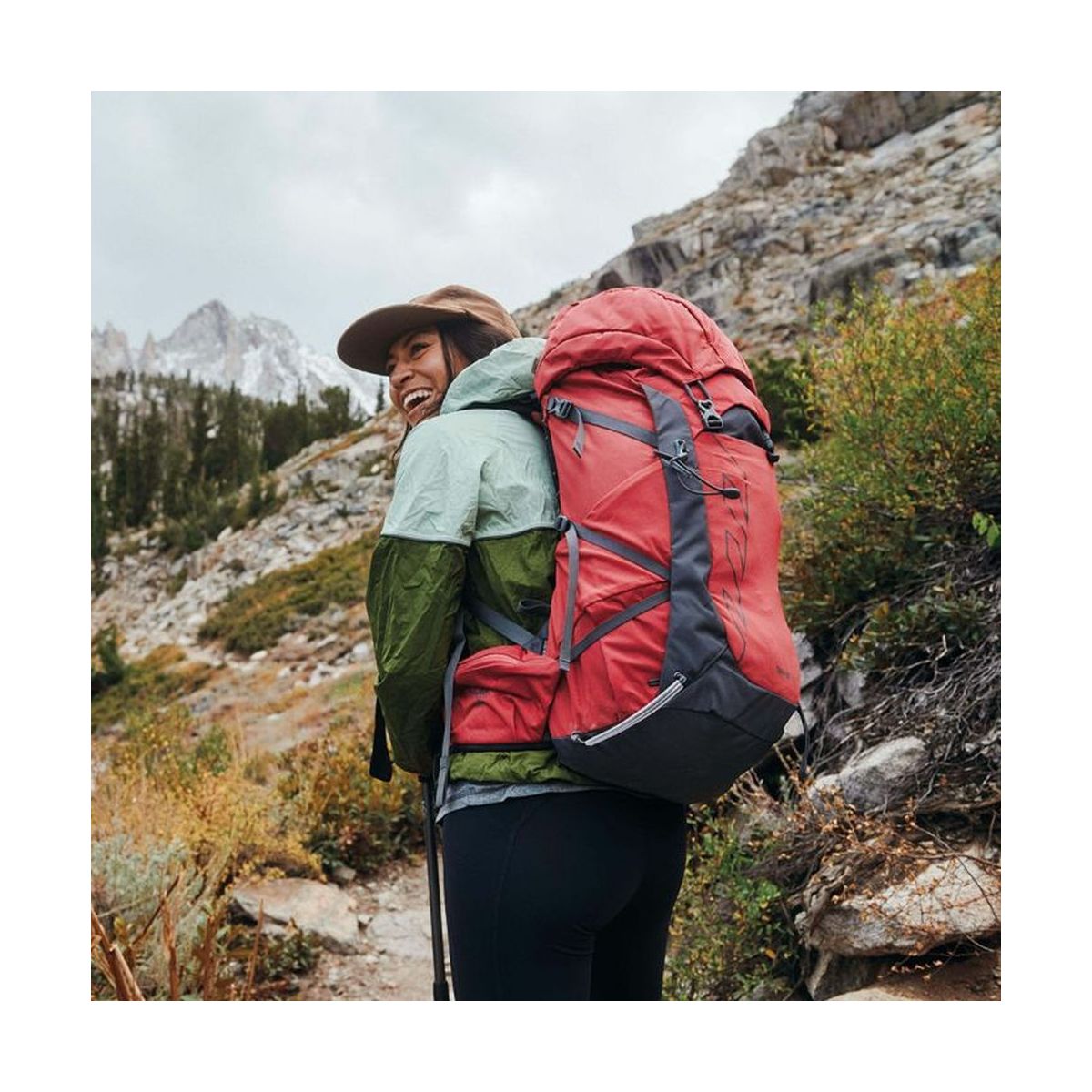 Tempest 33 został zaprojektowany z myślą o aktywnym użytkowaniu i wyposażony w praktyczne rozwiązania, takie jak mocowanie kijów trekkingowych Stow-on-the-Go, chowane uchwyty na czekan z mocowaniem bungee oraz podwójne paski kompresyjne, które stabilizują ładunek.