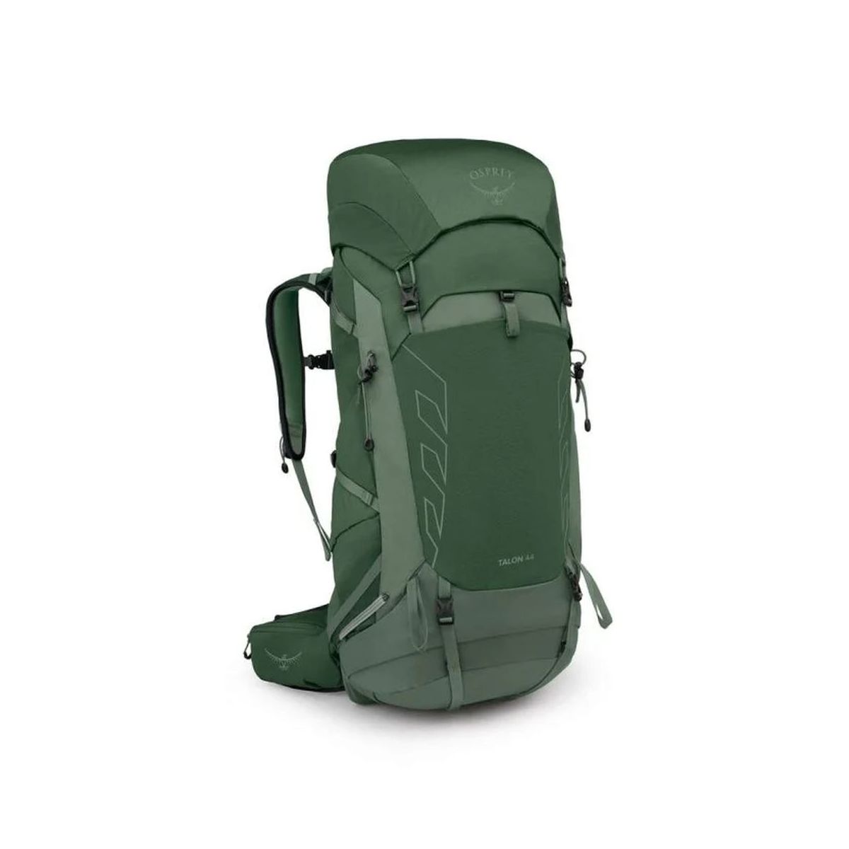 Talon 44 został zaprojektowany z myślą o aktywnym użytkowaniu i wyposażony w praktyczne rozwiązania, takie jak mocowanie kijów trekkingowych Stow-on-the-Go, chowane uchwyty na czekan z mocowaniem bungee oraz podwójne paski kompresyjne, które stabilizują ładunek.