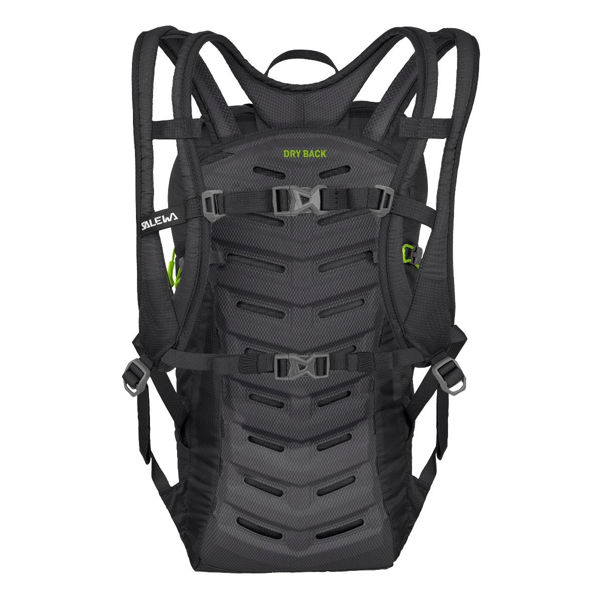 System nośny Salewa Dry Back Contact wraz z tylnym panelem z pianki EVA składającym się z kanalików 3D dają bardzo dobry przepływ powietrza i wysoką oddychalność pozwalającą obniżyć temperaturę pleców i ograniczyć pocenie.