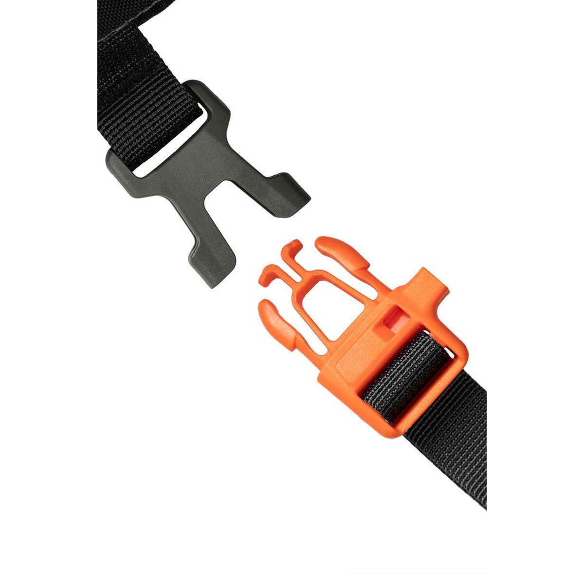 - zintegrowany gwizdek alarmowy w klamrze pasa piersiowego