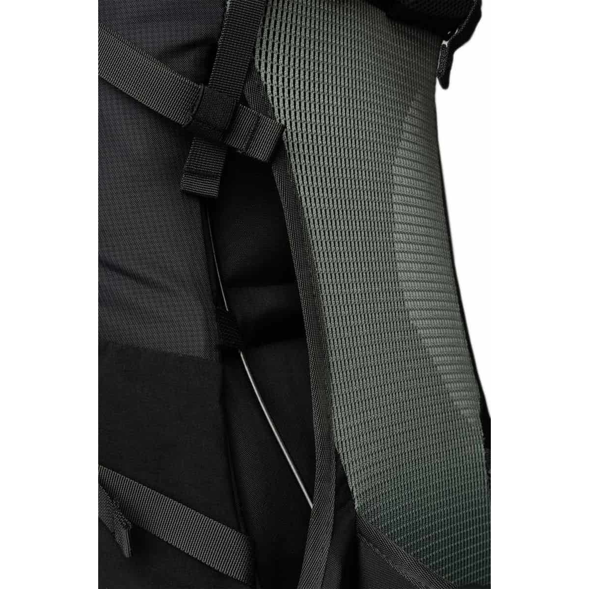 System nośny oparty jest na wentylowanym panelu tylnym z oddychającej siateczki, co zapewnia komfort podczas długich tras. Pas biodrowy i piersiowy są regulowane, a w klamrze pasa piersiowego umieszczono zintegrowany gwizdek alarmowy. Bezpieczeństwo zwiększają również odblaskowe elementy na szelkach.