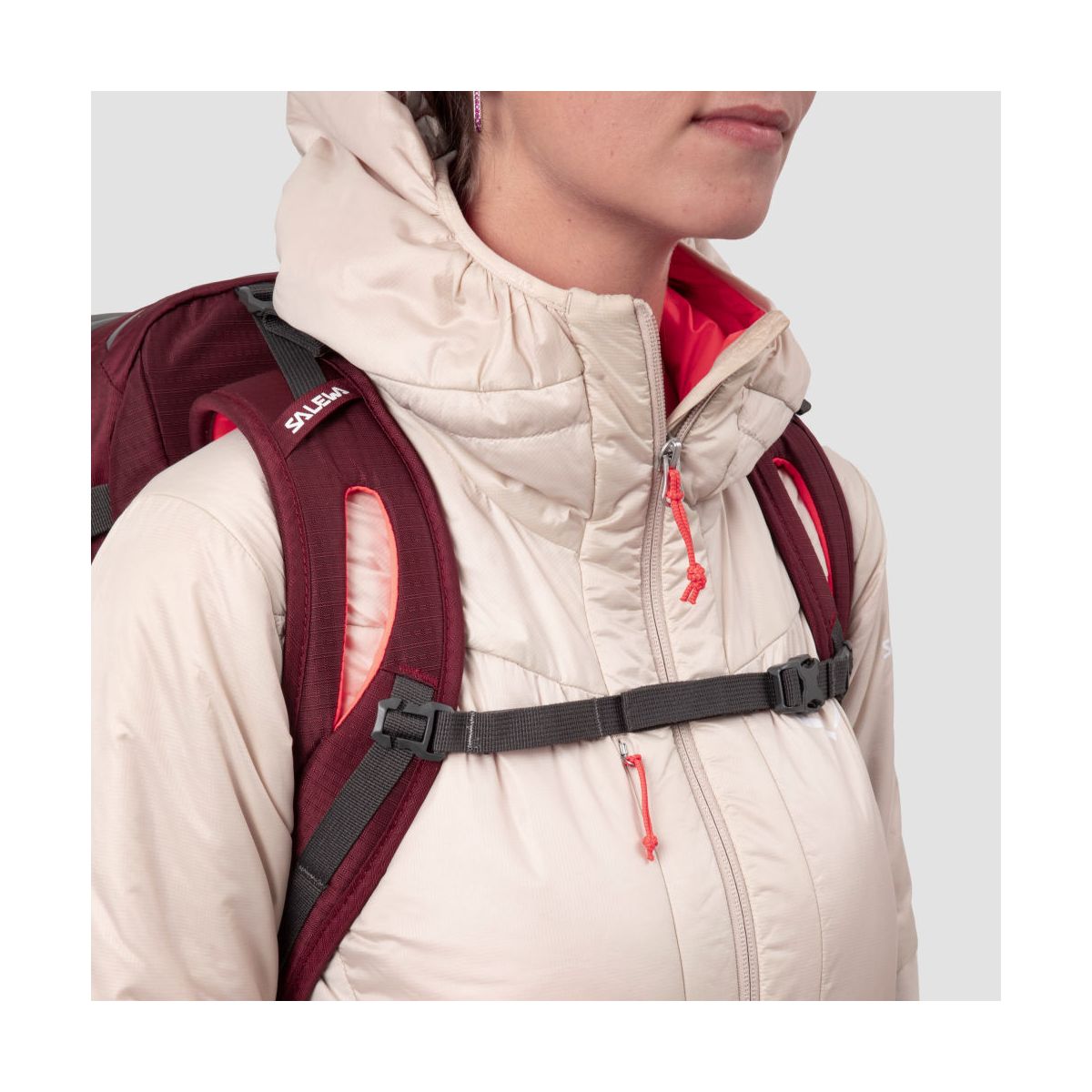 28-litrowa pojemność damskiego plecaka Winter Mate idealnie sprawdzi się podczas wycieczek na fokach czy rakietach śnieżnych, na które chcesz zabrać ze sobą tylko to, co najważniejsze. Opracowany przez Salewa lekki, oddychający system nośny Dry Back Contact zaprojektowany został tak, by jeszcze lepiej dopasowywać się do kobiecego ciała. Z kolei kanaliki wentylacyjne 3D zintegrowane w tylnym panelu z pianki EVA dbają o odpowiednią cyrkulację powietrza przy plecach zapobiegając tym samym ich przepoceniu w trakcie intensywnego wysiłku.