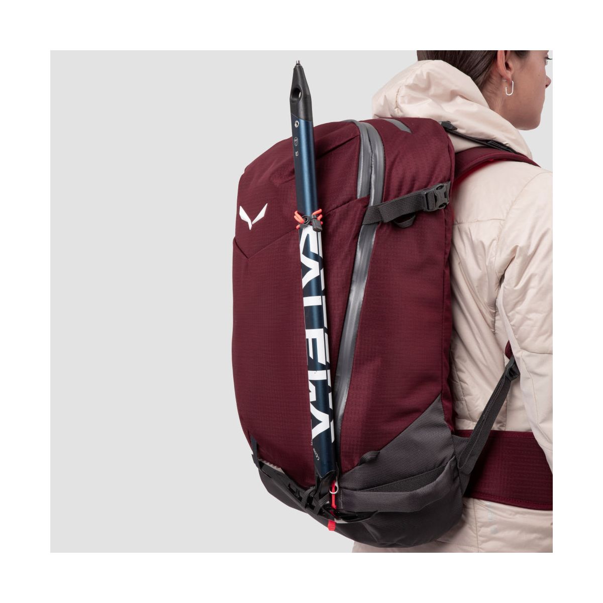 W wachlarzu praktycznych rozwiązań znajdziesz m.in.: łatwo dostępną przegrodę na łopatę i sondę lawinową, równoległe mocowanie nart, mocowania czekana, deski snowboardowej i rakiet śnieżnych oraz wygodne zamknięcie na zamek pozwalające łatwo dostać się do rzeczy schowanych na samym dnie plecaka. Ponadto w modelu zintegrowano bezpieczną kieszeń na najcenniejsze drobiazgi z uchwytem na klucze oraz specjalne klamry, które bez problemu mogą być obsługiwane w rękawiczkach.