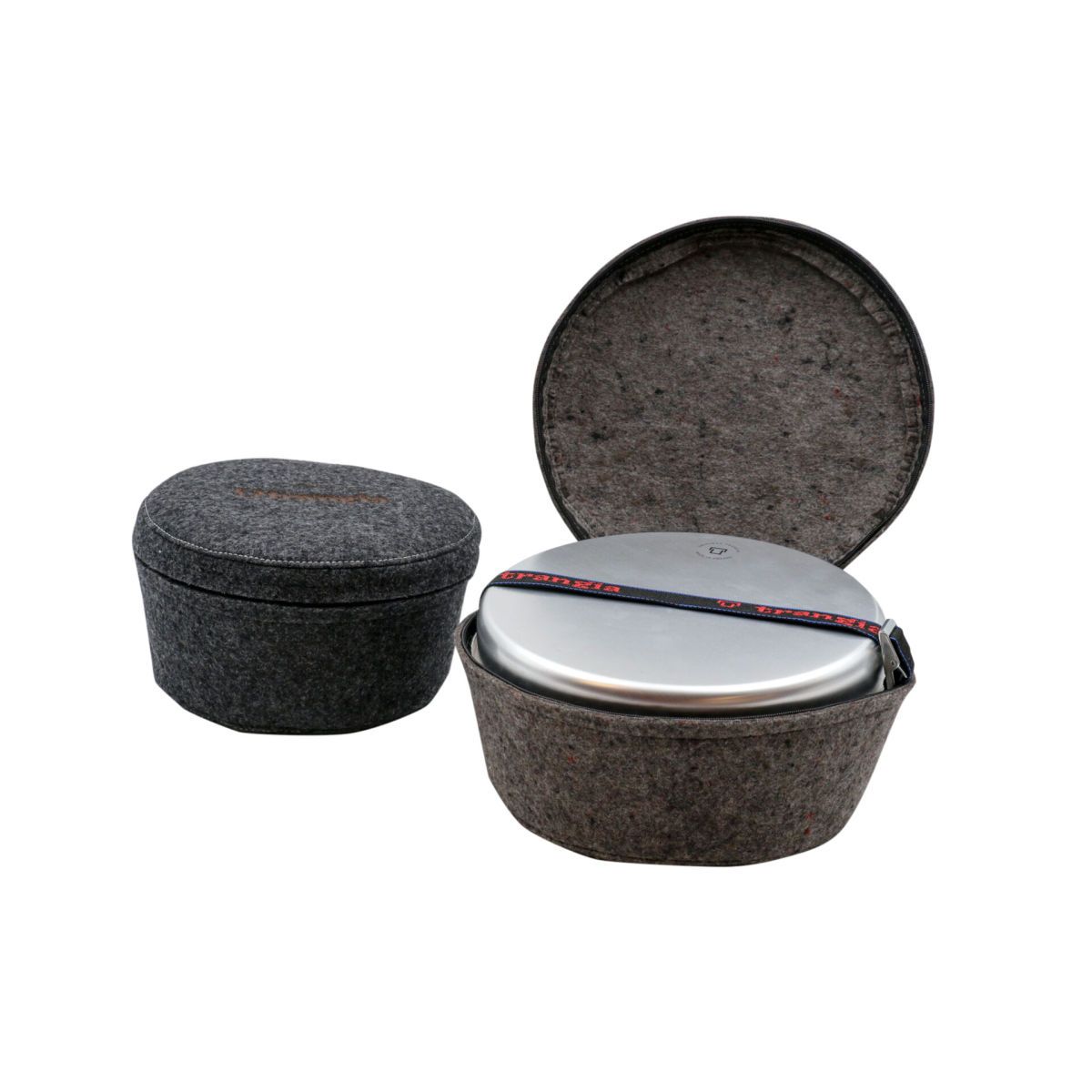 Funkcjonalny pokrowiec na kuchenkęTrangia 27 Small, wykonany z recyklingowanej wełny filcowanej od Woolpower.