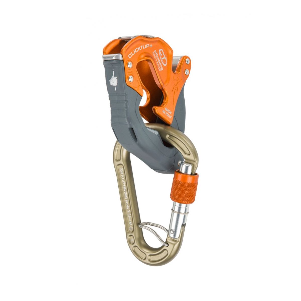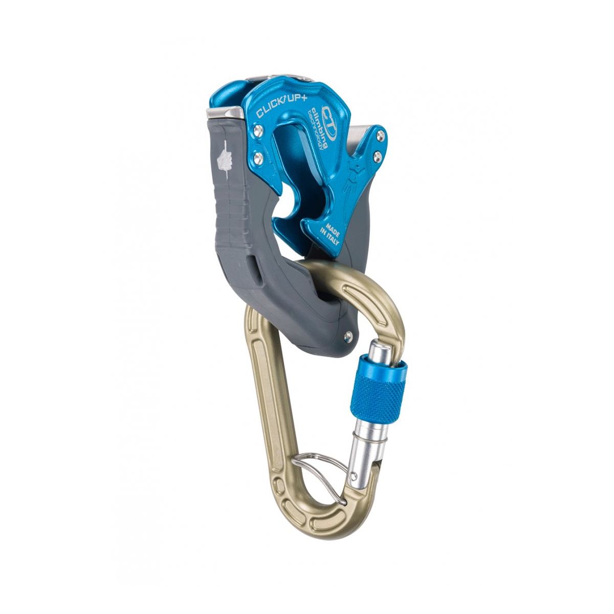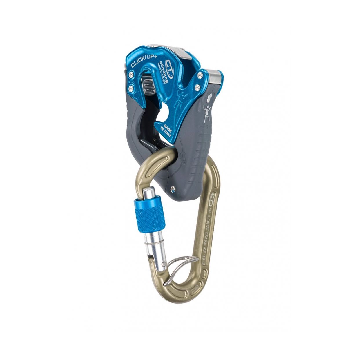 Przyrząd Climbing Technology Click Up Plus jest połączony w zestaw z karabinkiem Concept SGL HC. Jest on kuty na gorąco, wykonany z lekkich stopów i wyposażony w system ACL zapobiegający jego niepożądanej rotacji. Posiada także anodowaną powłokę, zwiększającą jego odporność.