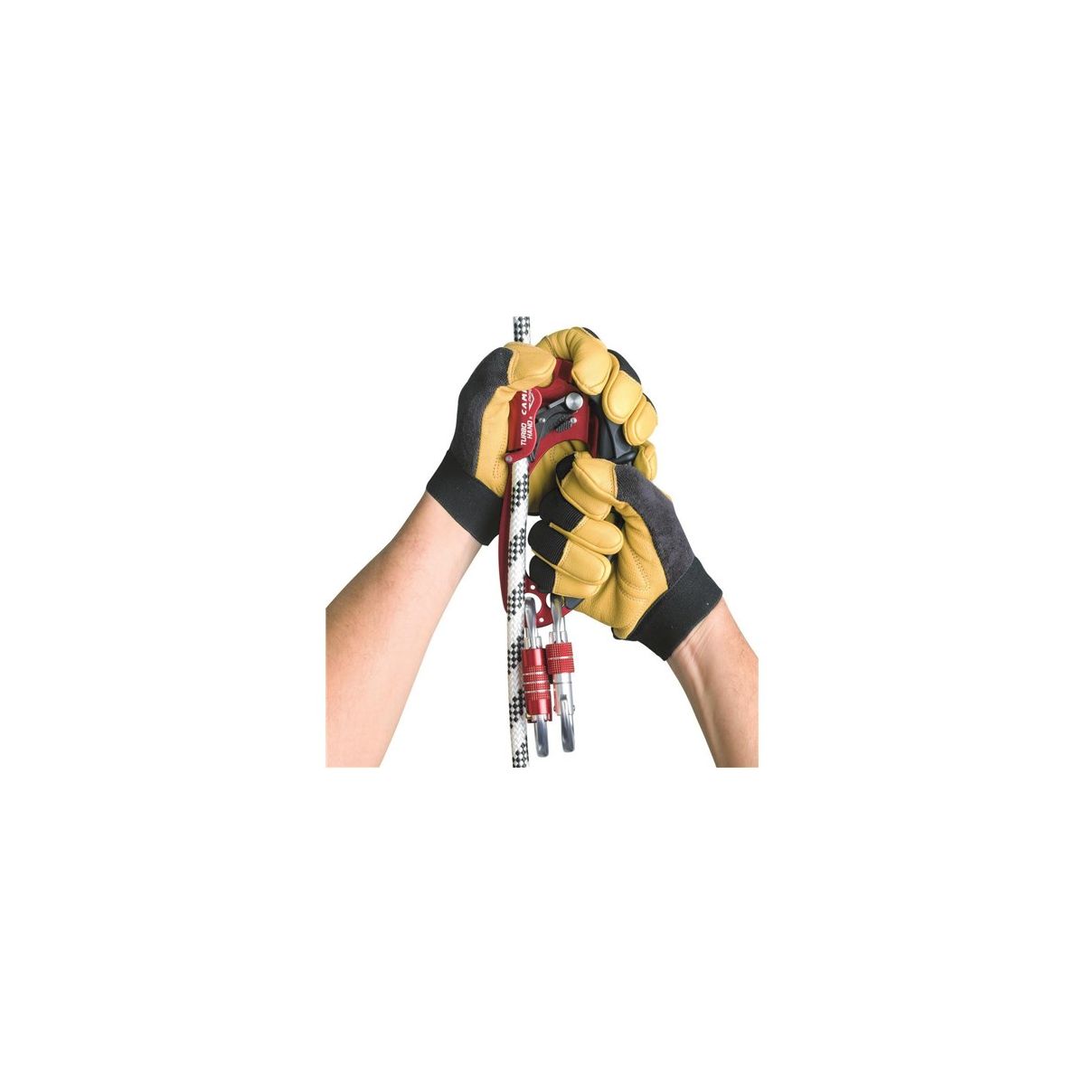 Prowadzenie liny w tej samej płaszczyźnie co rączka eliminuje odchylanie się przyrządu , Gumowy uchwyt został przedłużony co ułatwia chwyt dwoma rękami. Geometria pozwala na swobodne używanie również na trawersach.