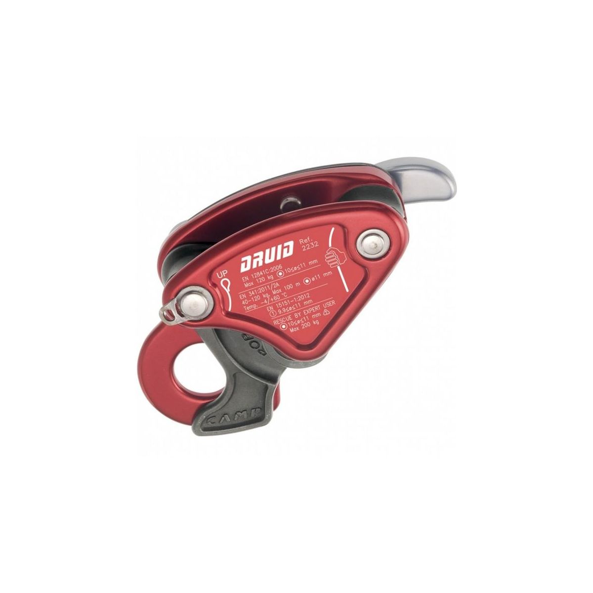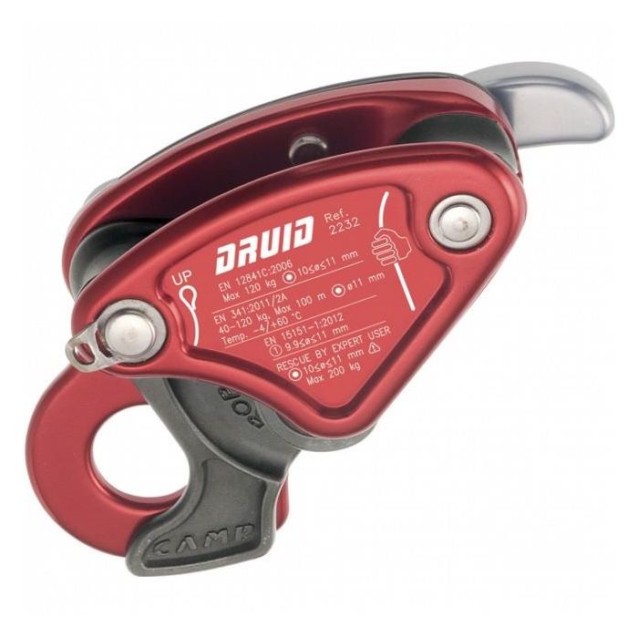 Lekki i kompaktowy przyrząd zjazdowy Camp Druid z systemem automatycznego hamowania.