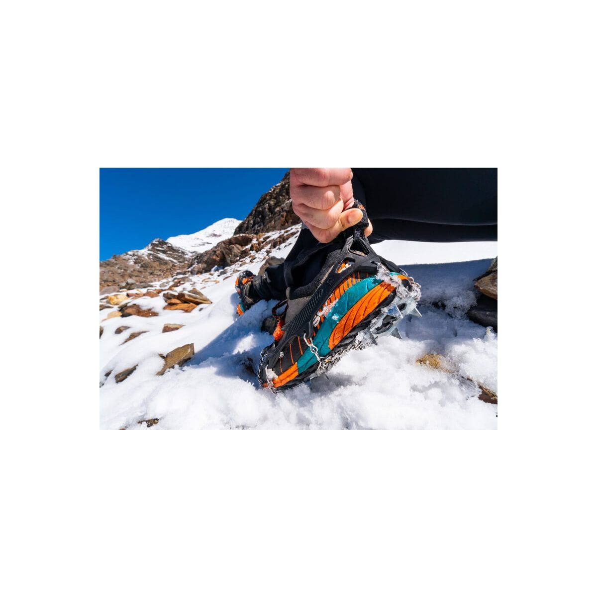ostre kolce pod podeszwą znacząco ułatwiają utrzymanie równowagi na lodzie i twardym śniegu