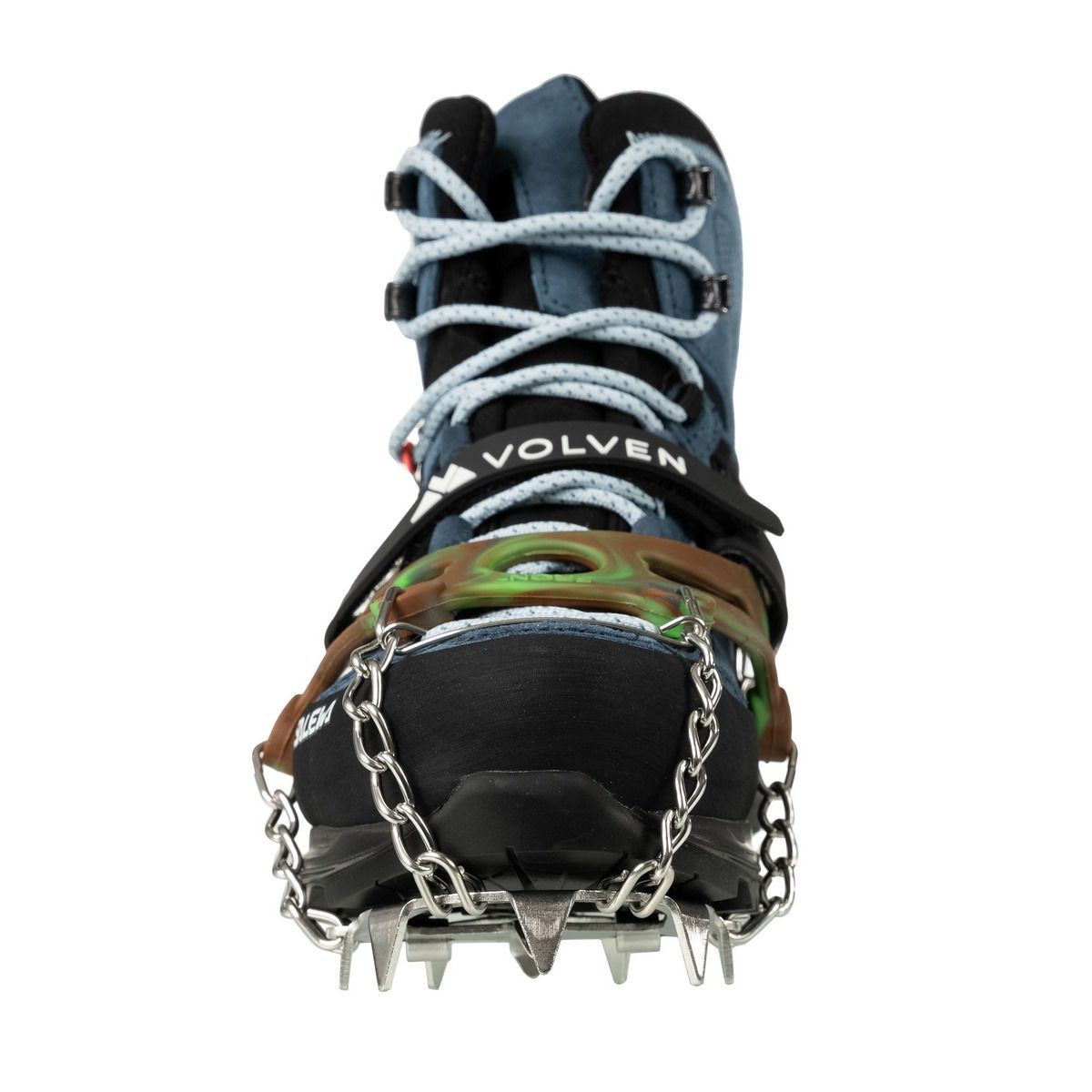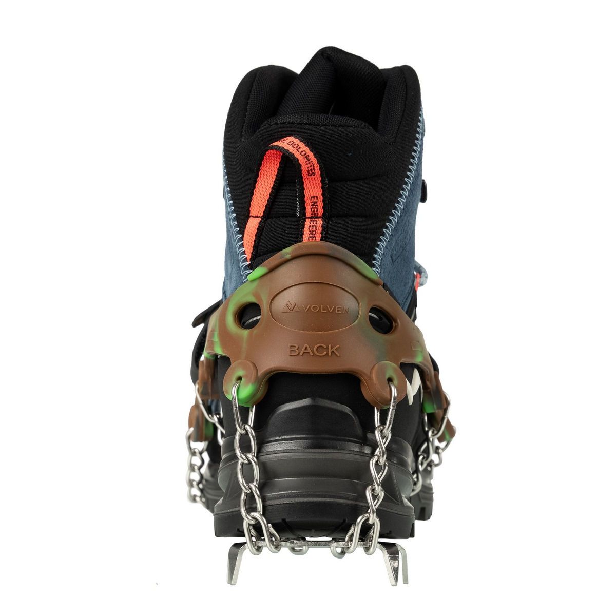 Ten model wyróżnia się opaską utrzymaną w kolorystyce kamuflażu, co czyni go szczególnie atrakcyjnym dla fanów bushcraftu, survivalu, harcerzy i wszystkich tych, którzy chcą, by ich sprzęt wtapia się w leśne otoczenie. Silikonowa opaska jest odporna na niskie temperatury, nie ulega sztywnieniu i nie przywiera do niej śnieg. Dzięki swojej elastyczności łatwo dopasowuje się do różnych modeli butów turystycznych, nawet tych o bardziej miękkiej podeszwie. Dodatkowe zabezpieczenie stanowi pasek z rzepem, który poprawia stabilność i utrzymuje raczki na swoim miejscu podczas marszu.