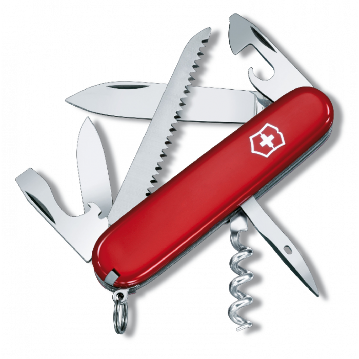 Model Camper wyposażono w 15 funkcji takich jak: duże ostrze, małe ostrze, otwieracz do puszek, śrubokręt krzyżakowy oraz wiele innych.