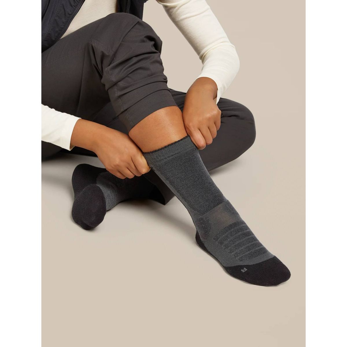 Damskie skarpety Icebreaker Hike + Heavy Crew wykonane z wełny merynosów z dodatkiem nylonu i Lycry® - oferują bardzo dobrą amortyzację oraz komfort cieplny w chłodniejszych warunkach.