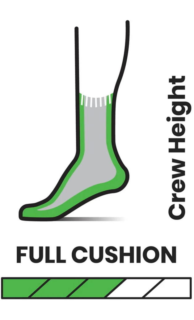 Najbardziej klasyczny, teraz zaktualizowany model, damskiej skarpety Smartwool Hike Crew Full Cushion - idealny na zaawansowane wycieczki górskie. W nowej wersji zastosowano bardziej ekologiczne materiały z dodatkiem nylonu z recyklingu.