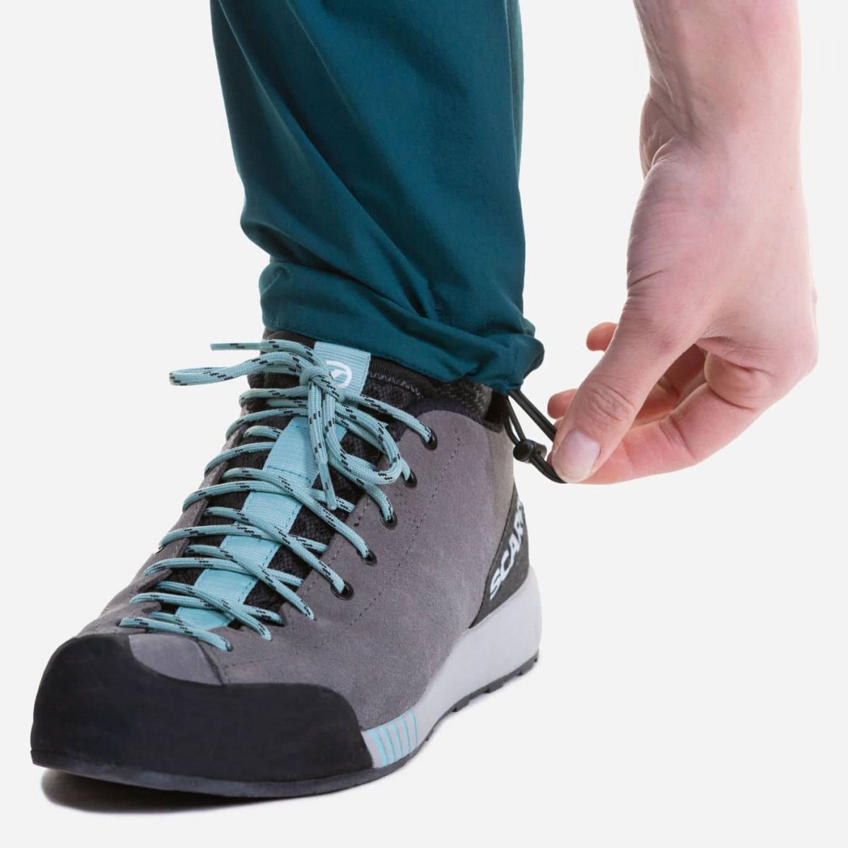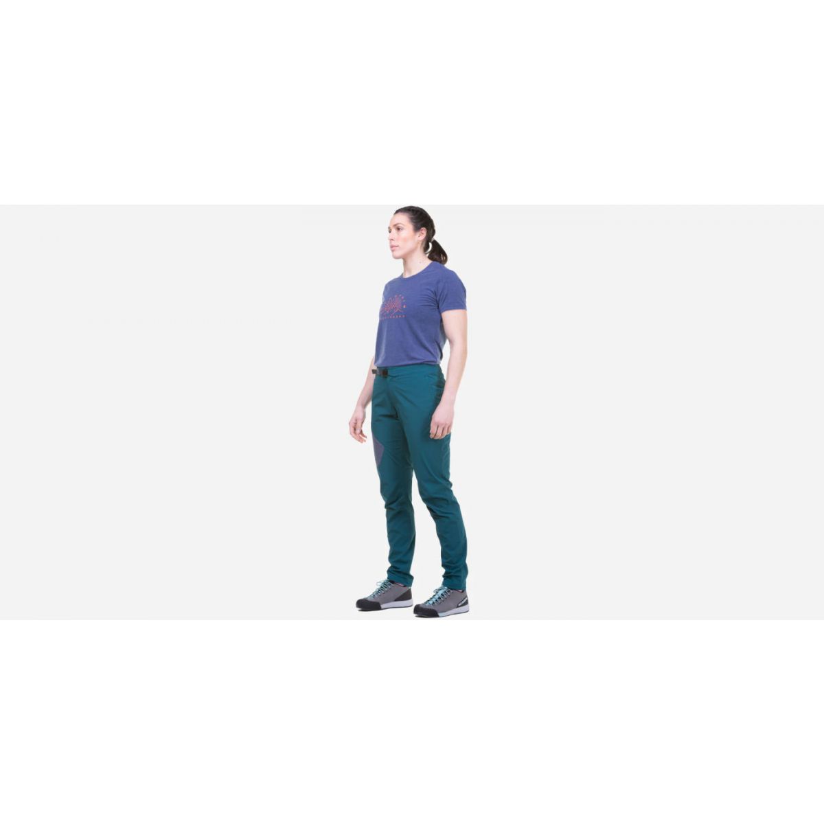 Techniczny, dopasowany krój z wąskimi, dopasowanymi nogawkami zapewnia swobodę ruch podczas wspinaczki i podejścia.