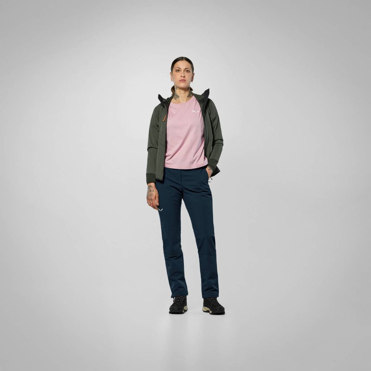 Salewa Spodnie Trekkingowe Damskie PUEZ DOLOMIA 2 PANTS W to doskonały wybór dla każdej miłośniczki górskich wędrówek, która potrzebuje niezawodnej ochrony przed chłodem i wiatrem. Dzięki technologii STORMWALL 3L materiał skutecznie blokuje podmuchy wiatru i chroni przed lekką mżawką, jednocześnie zapewniając bardzo dobrą oddychalność i komfort podczas całego dnia na szlaku. Elastyczny krój oraz wytrzymała, odporna na przetarcia konstrukcja sprawiają, że spodnie świetnie sprawdzają się w wymagających warunkach i zmiennej pogodzie.
