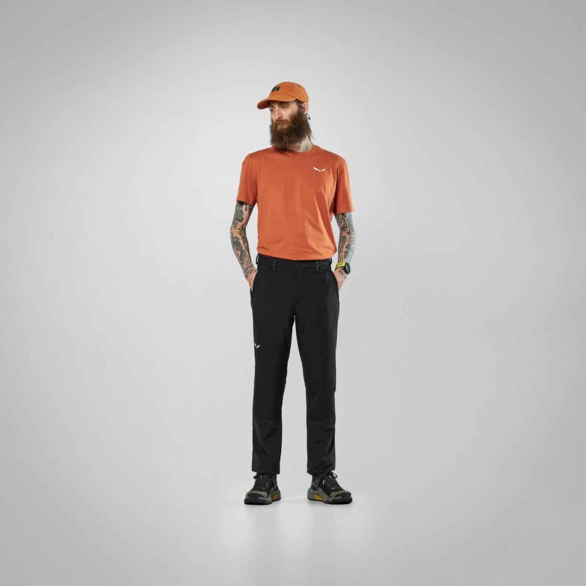 Materiał STORMWALL 3L w połączeniu z hydrofobowym wykończeniem DWR bez PFC dodatkowo zwiększa odporność na wilgoć, jednocześnie dbając o wygodę i środowisko. Elastyczny pas z szlufkami oraz ergonomiczny krój z klinem w kroku gwarantują pełną swobodę ruchu. Funkcjonalność modelu podkreślają dwie kieszenie zapinane na zamek, idealne do bezpiecznego przechowywania najpotrzebniejszych drobiazgów.