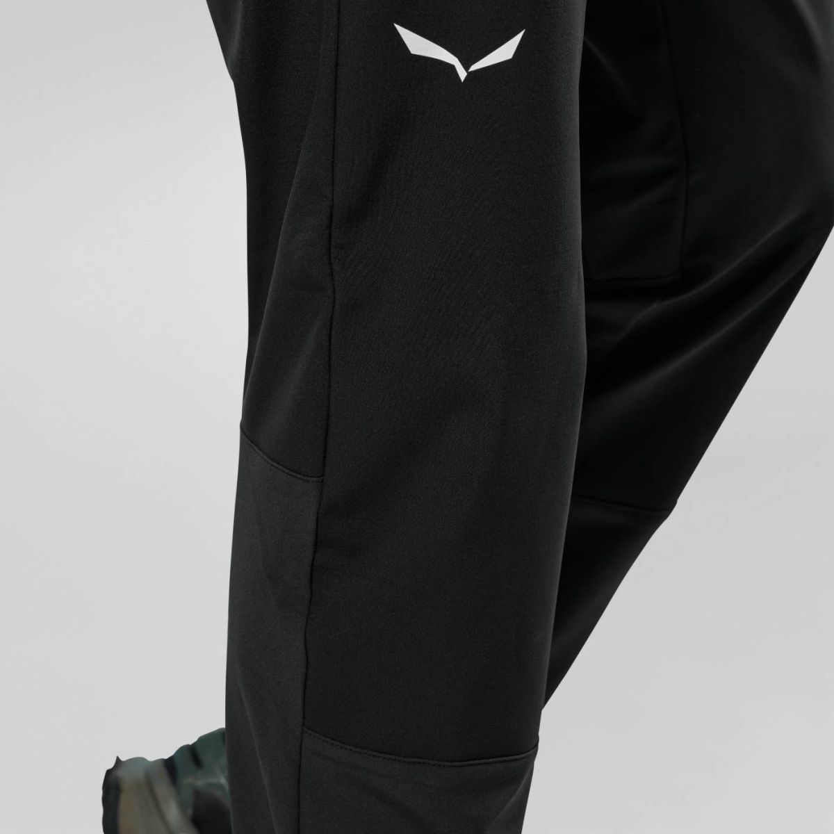Dolna część nogawek wyposażona została w ściągacz sznurkowy, który pozwala na dopasowanie ich do różnego typu obuwia — szczególnie praktyczne w trudnym górskim terenie. Spodnie spełniają normy środowiskowe bluesign® i posiadają certyfikat Salewa Committed, co potwierdza ich ekologiczne wykonanie i zgodność z zasadami zrównoważonej produkcji.
